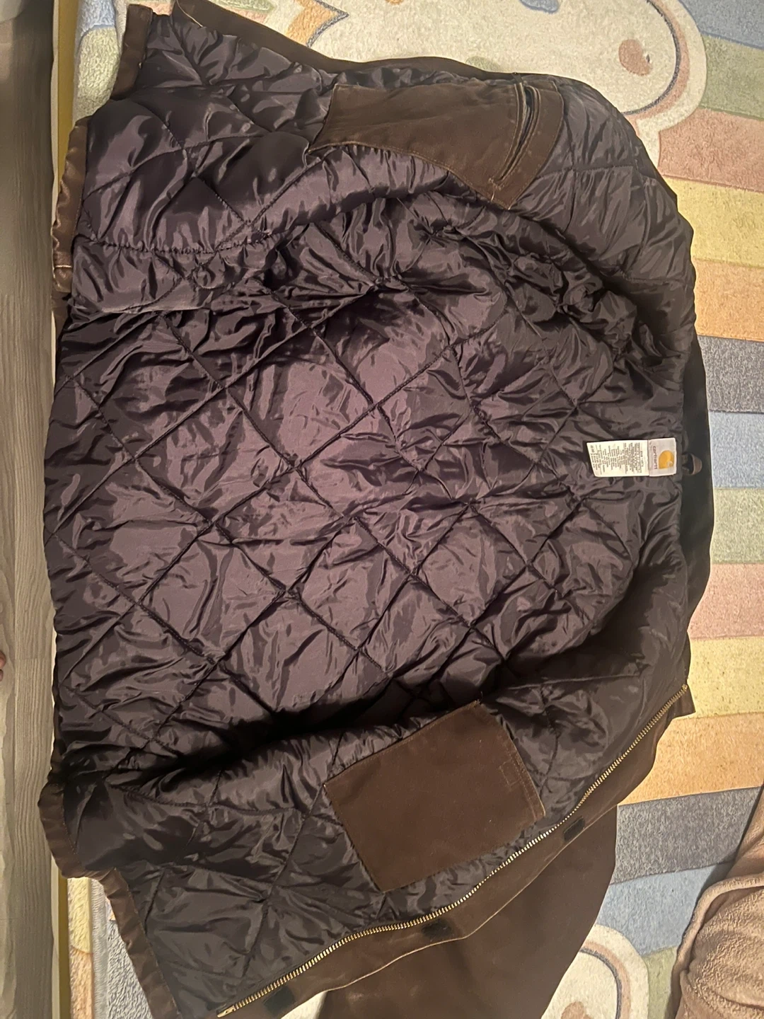 Selling a Carhartt J22 DKB jacket in size X-Large Tall. It's a durable and warm jacket, perfect for the Canadian weather! The jacket is made of 100% cotton shell with 100% nylon lining and 100% polyester interlining.