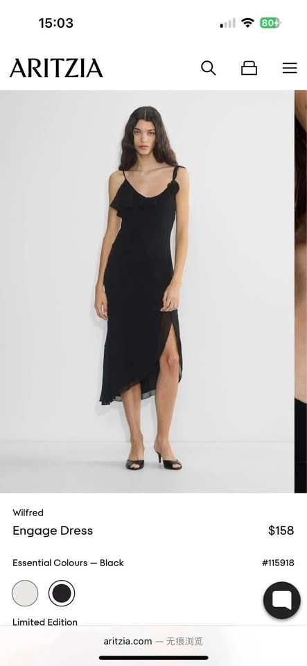 Buy & SellAritzia Wilfred Engage Dress Black Size MAritzia Wilfred Engage Dress Black Size M$80Very new, in perfect condition. Only worn once for a wedding.WHERE TO MEETCheck LocationView MapSELLERverifiedCynthia ChenCity Centre923 reviews0 chats·1 favorites·28 viewsSEND CHAT TO SELLERHi Cynthia Chen! I’m interested in your listing.Hi Cynthia Chen! I’m interested in your listing.Get the Karrot app to chatSign In to chat