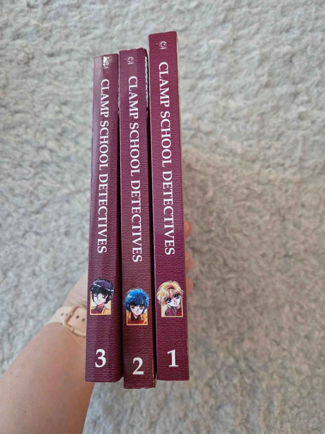 This is a set of three Clamp School Detectives manga volumes. They're written by Clamp and published by Tokyopop. Each volume includes a free color poster inside!