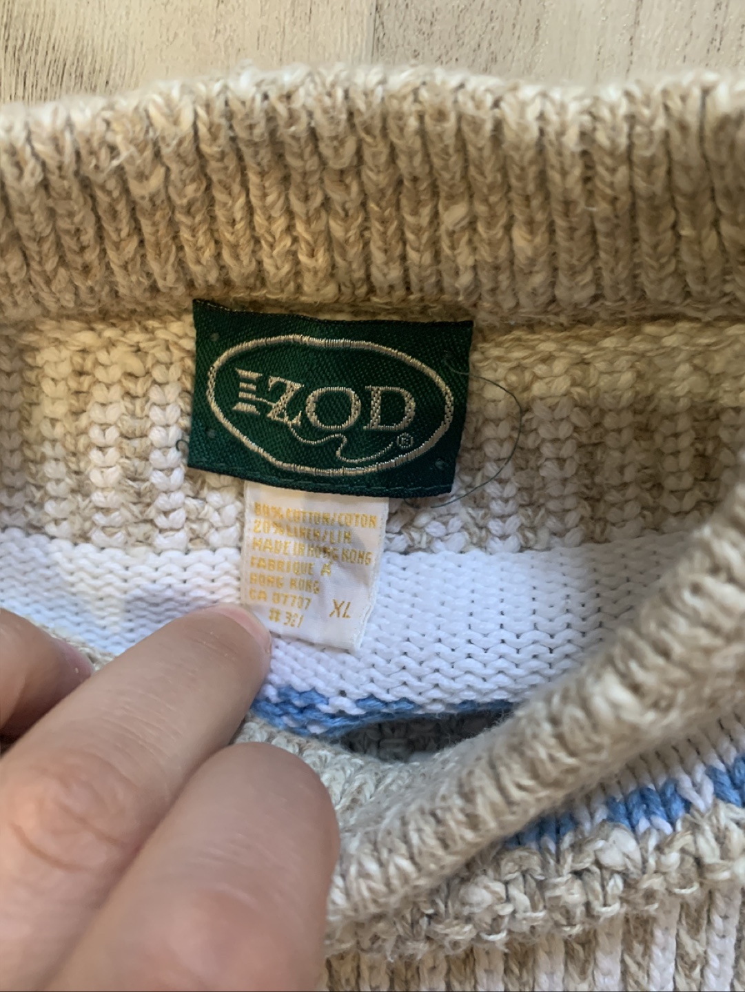 Cozy IZOD sweater with a unique striped pattern! It's a size XL and made from a blend of 80% cotton and 20% ramie/silk.