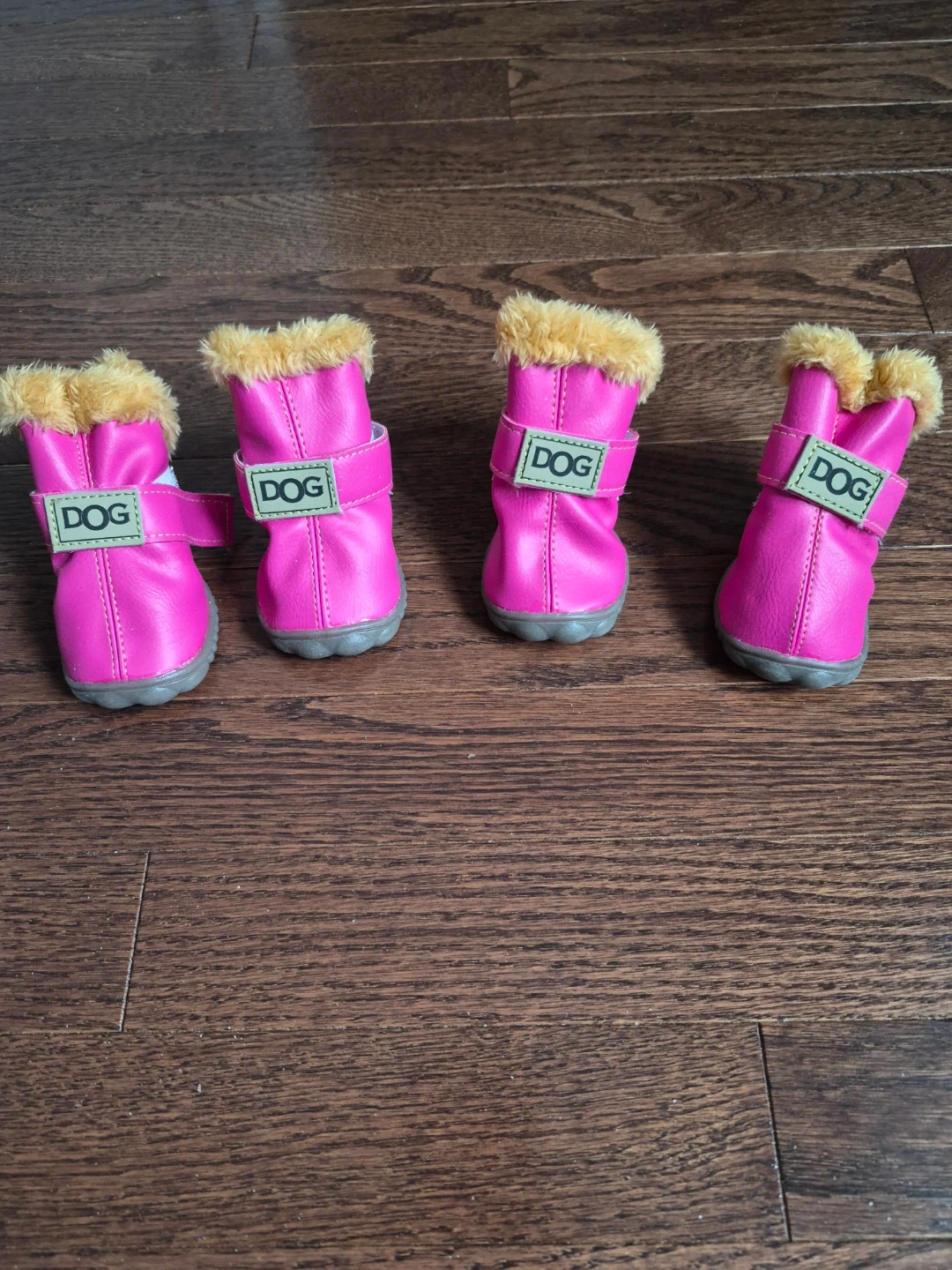 Buy & SellPink Dog BootsPink Dog Boots$7Set of four pink dog boots with fuzzy trim. Features adjustable straps and durable soles. Size is suitable for small to medium dogs.ConditionNewWHERE TO MEETCheck LocationView MapSELLERverifiedyyAurora Centre N600 reviews0 chats·0 favorites·4 viewsSEND CHAT TO SELLERHi yy! I’m interested in your listing.Hi yy! I’m interested in your listing.Get the Karrot app to chatSign In to chat