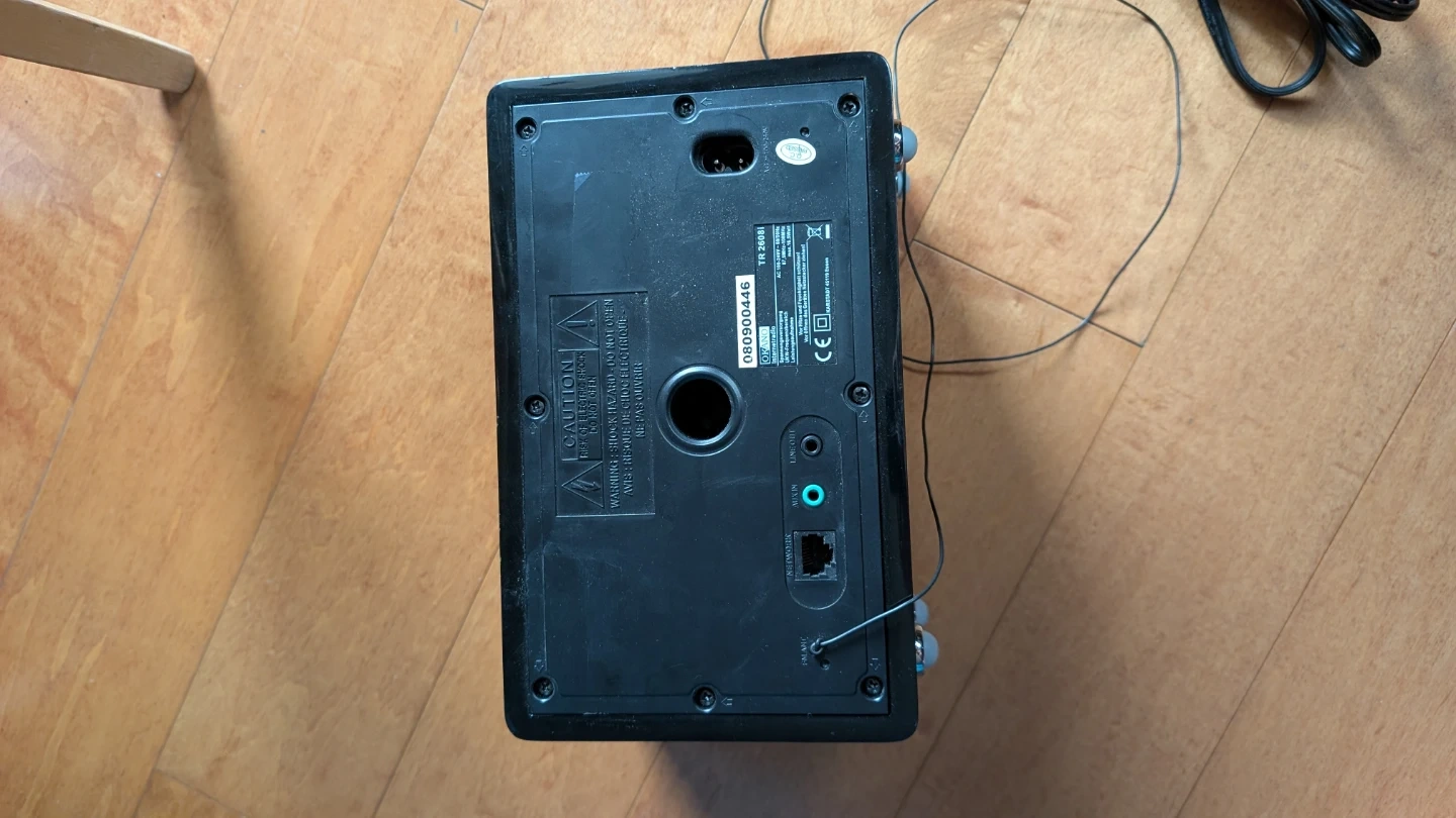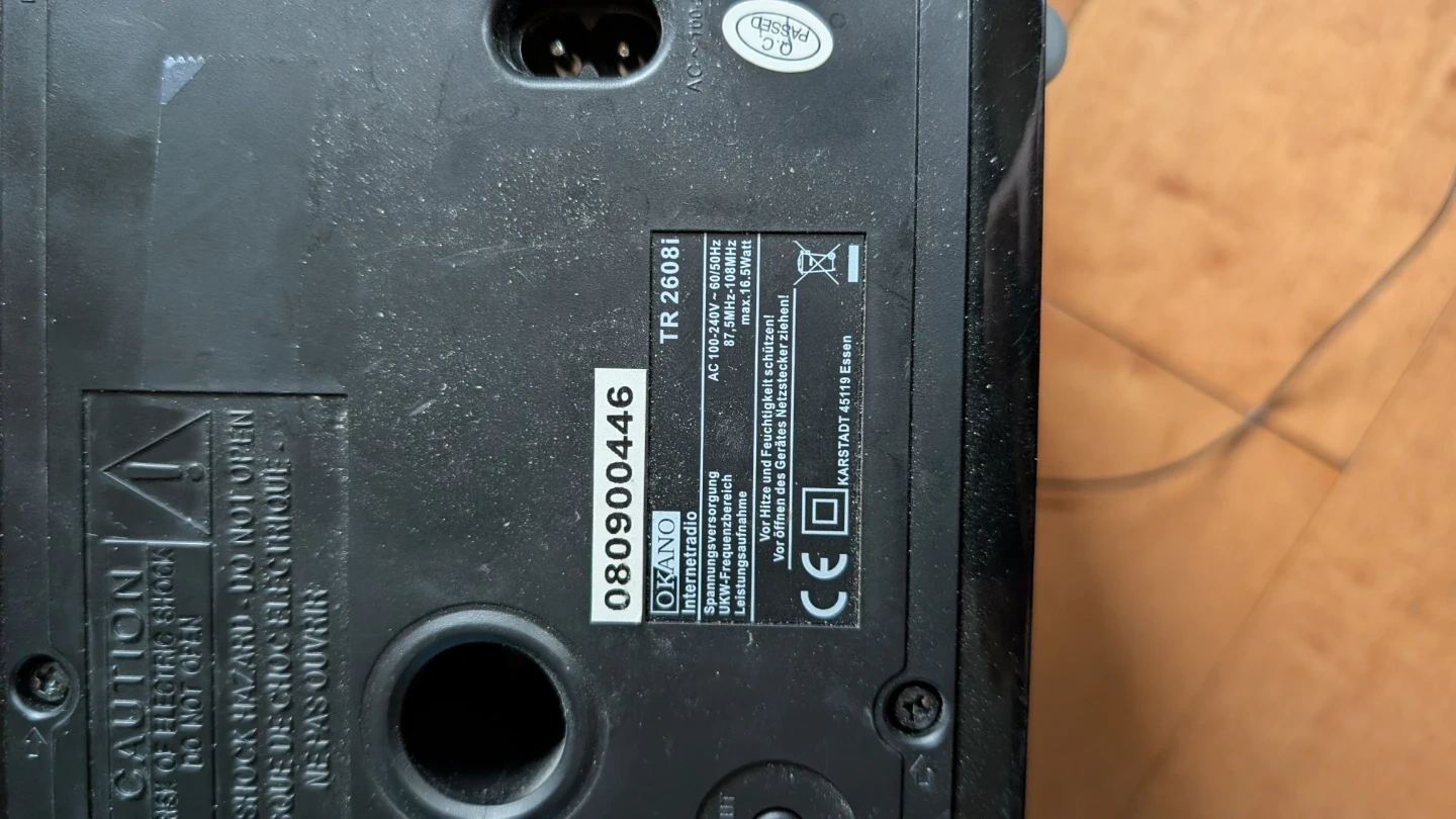 This OKANO TR 2608I is an internet and FM radio and media player. It supports AC 100-240V input and has a max power consumption of 16.8 Watt. Power cord is included.