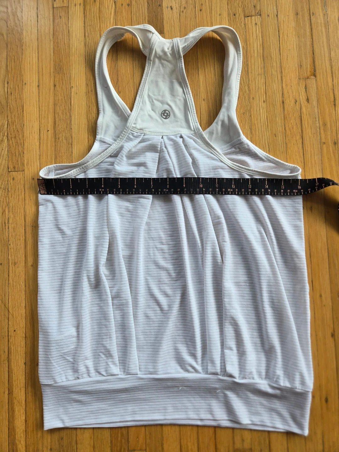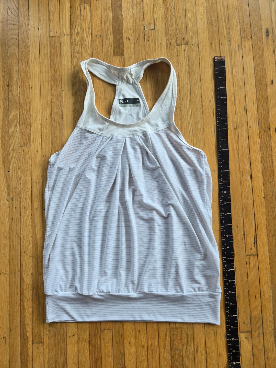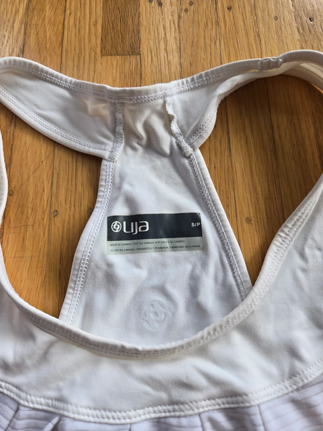 White womens LIJA elevated tank top. Made in Canada. Racerback style. Some small snags. Great for workouts!