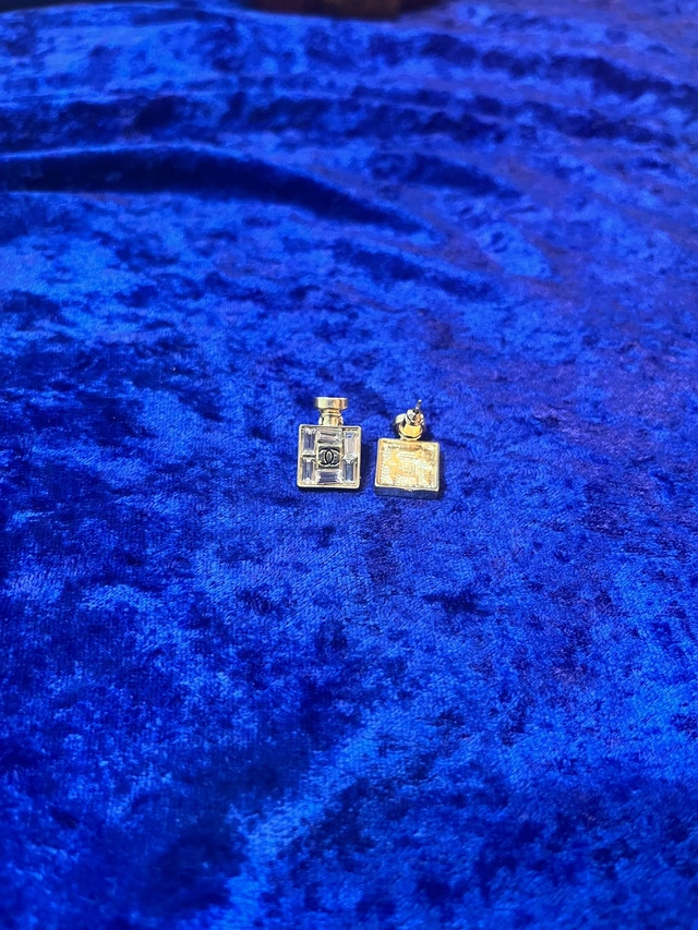 Elevate your style with these elegant bottle-shaped earrings. In brand new condition, these earrings feature the iconic Chanel logo. Ready to add a touch of luxury to your look?