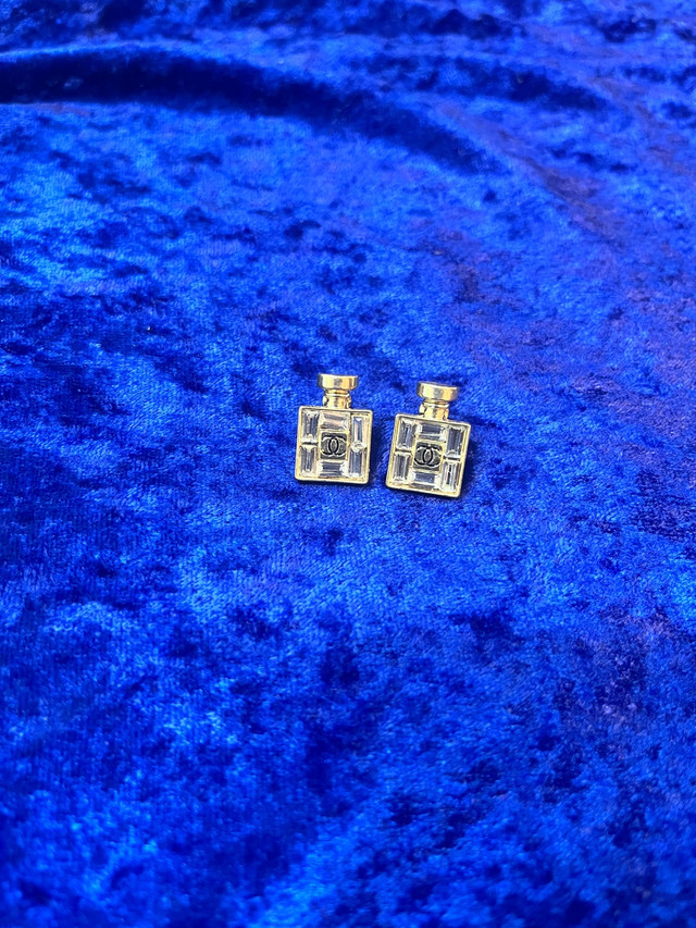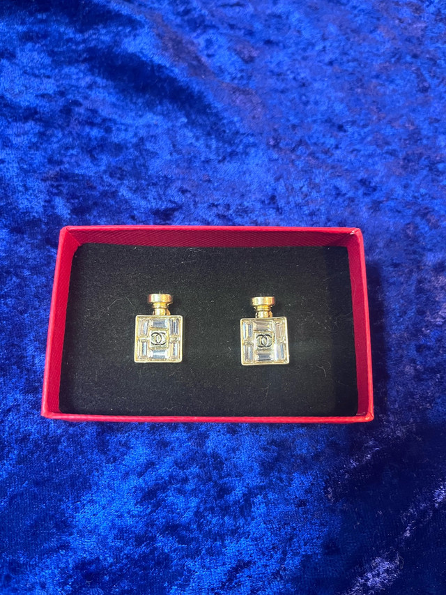 Elevate your style with these elegant bottle-shaped earrings. In brand new condition, these earrings feature the iconic Chanel logo. Ready to add a touch of luxury to your look?