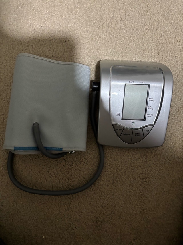 Selling a well-cared-for MediSana Automatic Arm Blood Pressure Monitor, Professional Type. It accurately measures blood pressure with MediSync technology and stores up to 99 measurements. Key features include a large LCD display with time/date, one-touch operation, and AC or battery power (AC adapter and 4 AA batteries included). Similar monitors typically sell for $30-$60. Priced fairly for its condition and features. If the ad is up, it's available.