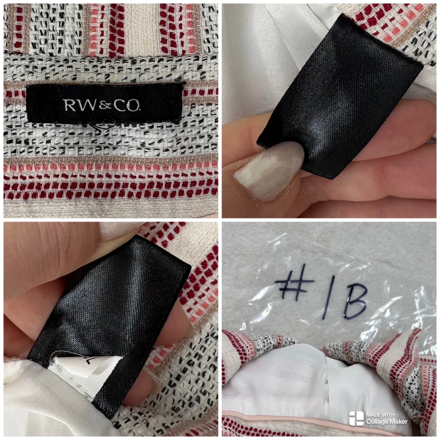 rw&co, blazer, jacket, striped, coral, red, moto, zipper, textured, knit, career, office, unique