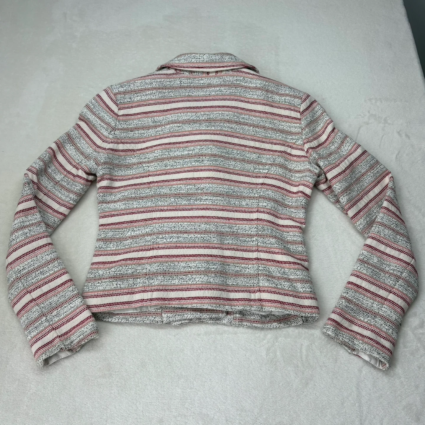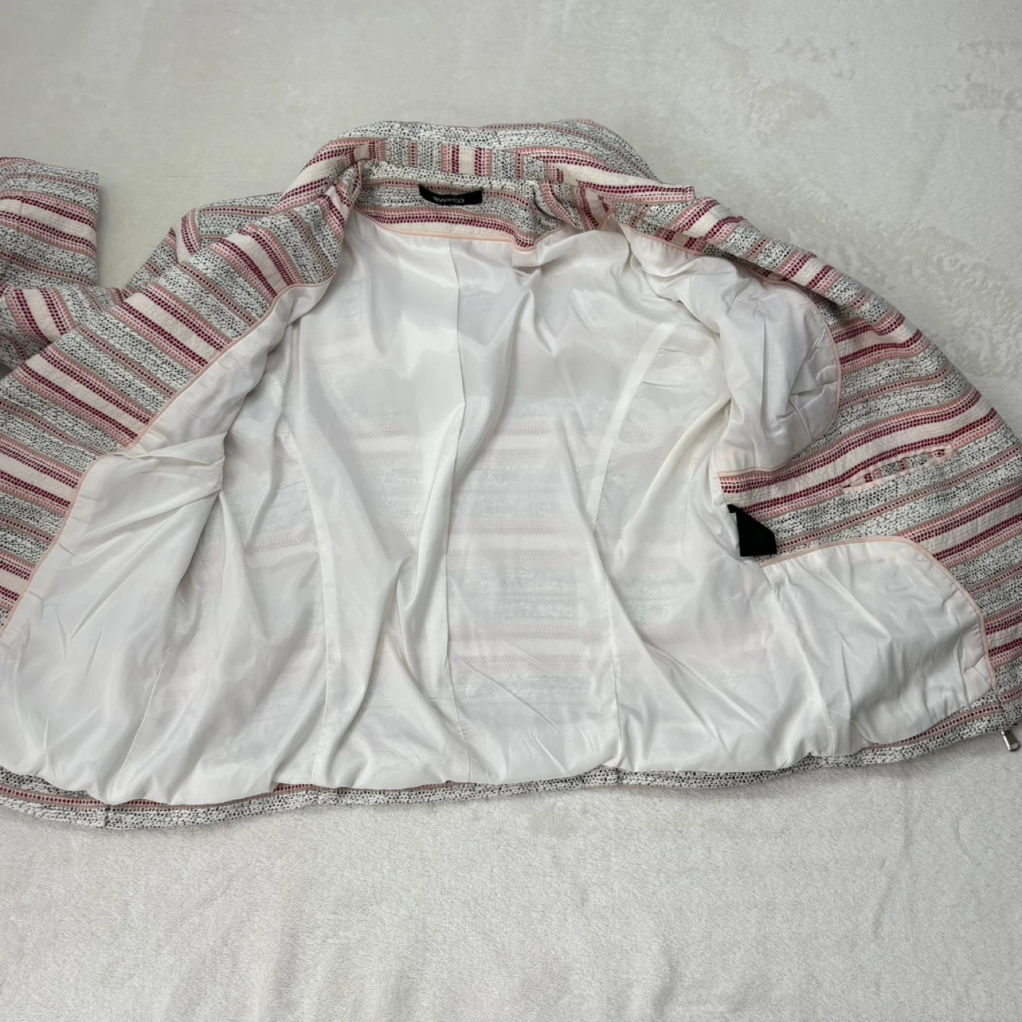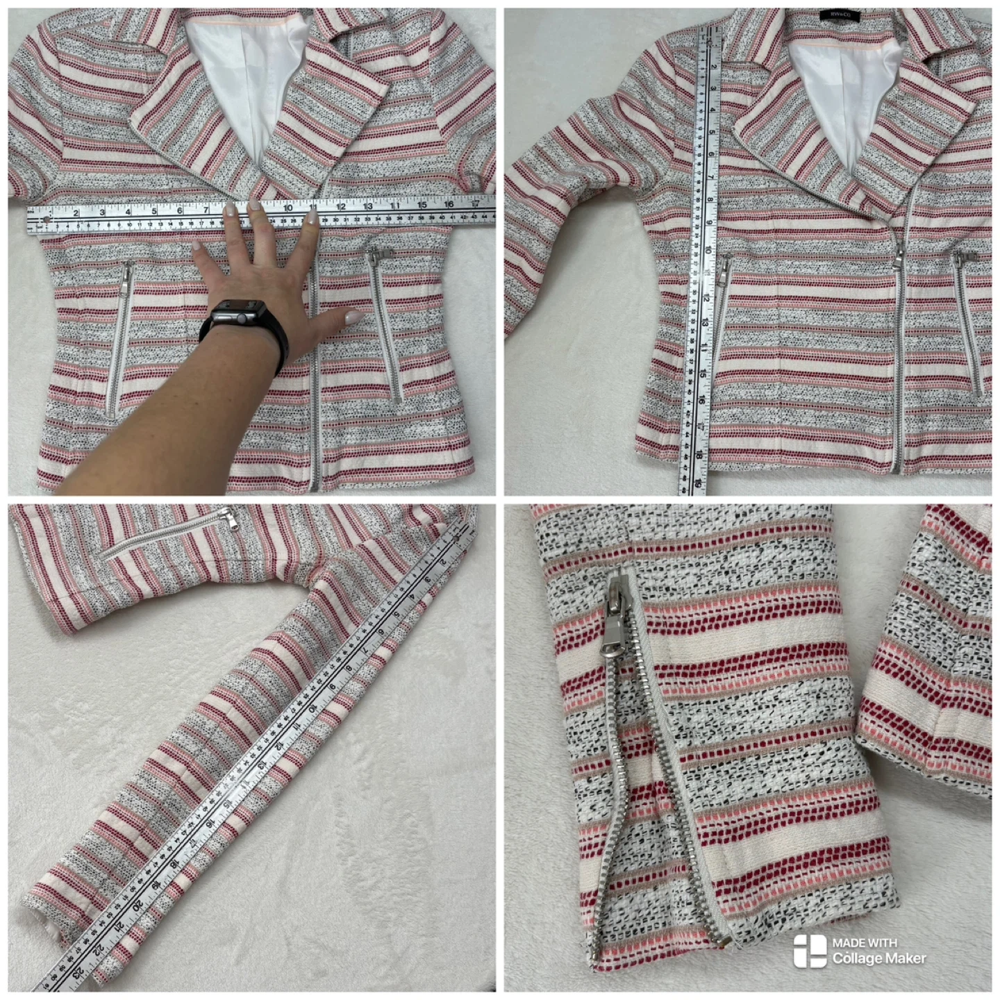 RW CO White Textured Knit Striped Moto Zip Blazer Jacket Sz M