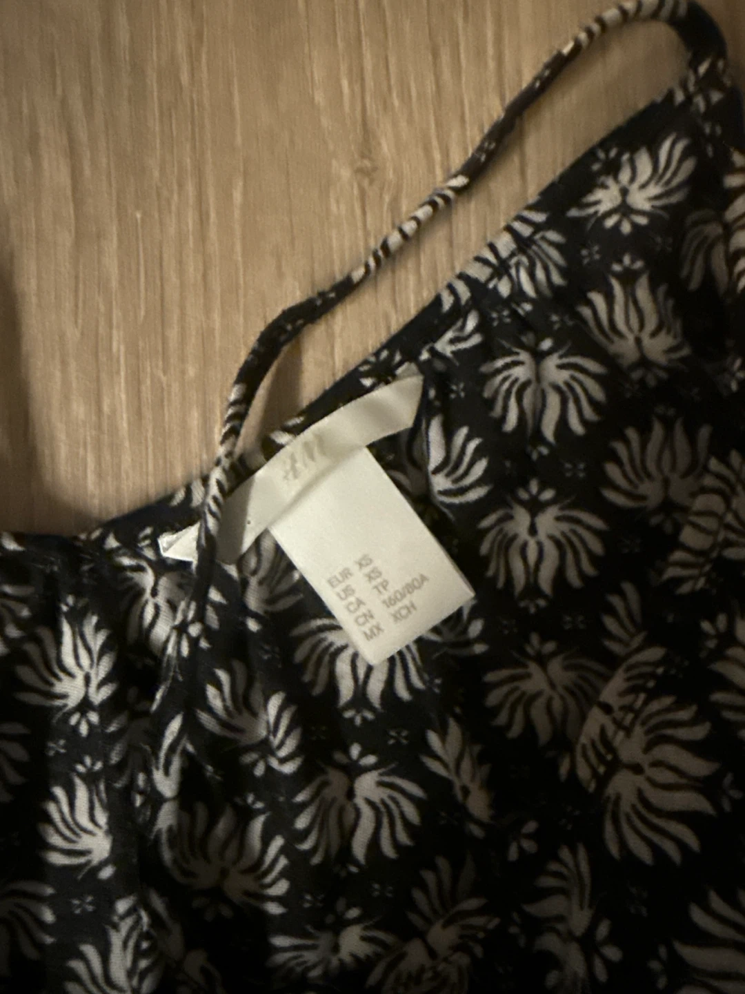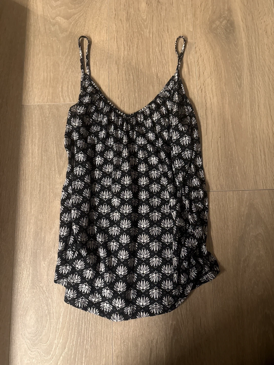 Selling a cute H&M cami top in size XS! It features a black and white floral pattern and is in great condition. Perfect for summer! Only worn twice in summer selling since im a student.