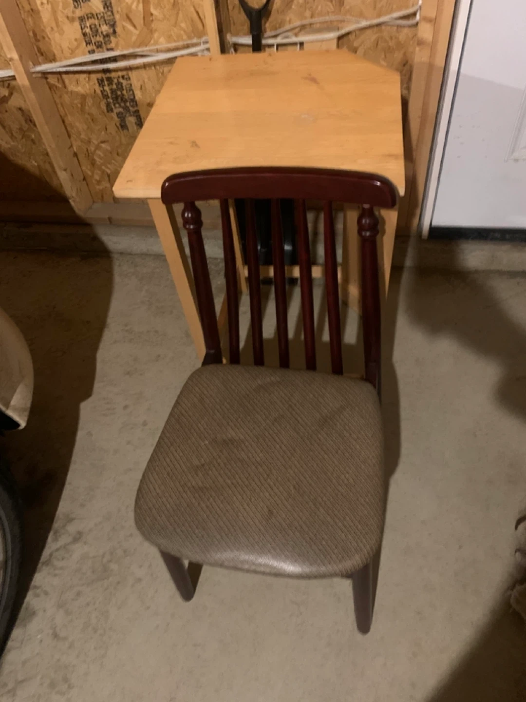 This is a two-piece set including a wooden desk and a matching chair. The desk has a light wood finish and the chair is upholstered in a brown fabric.