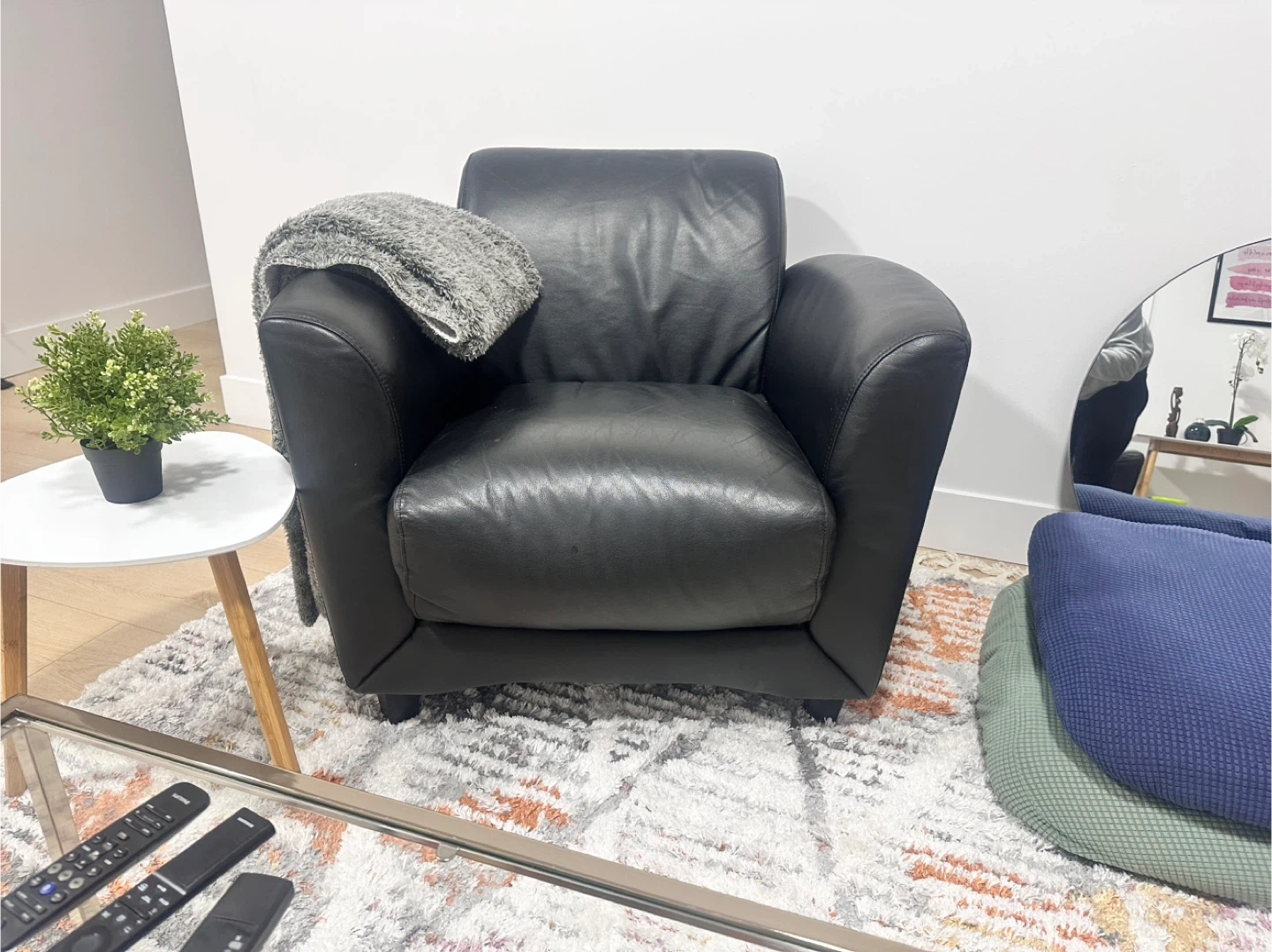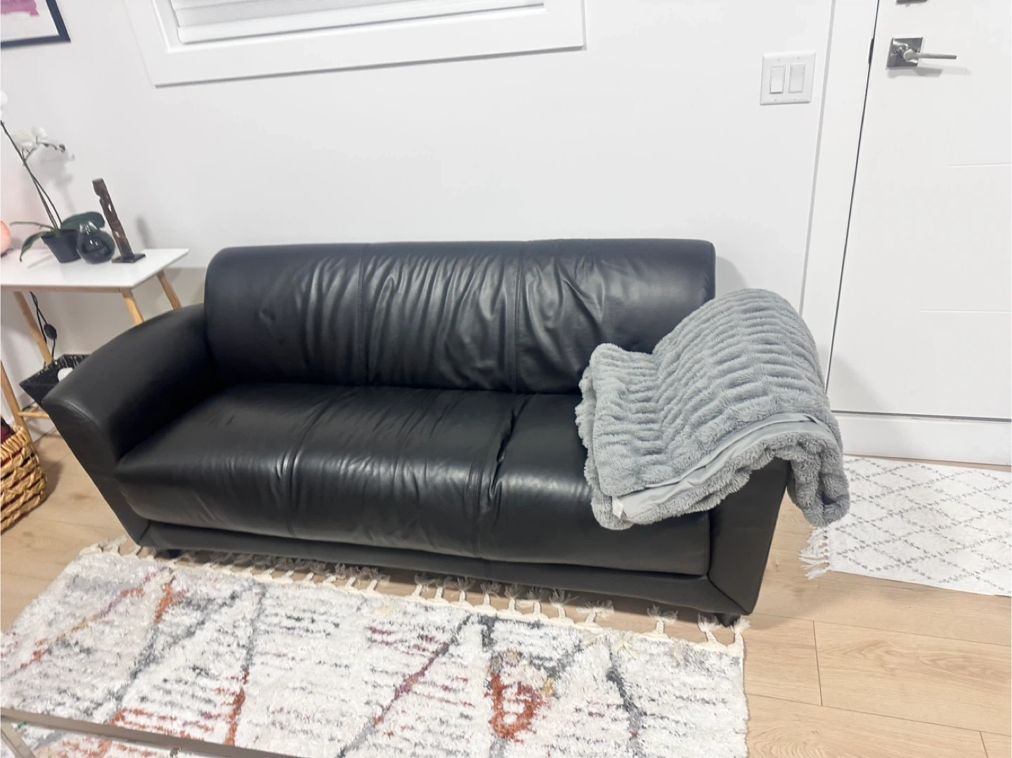Black Leather Sofa and Armchair Set