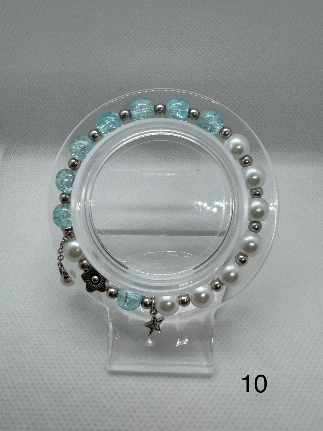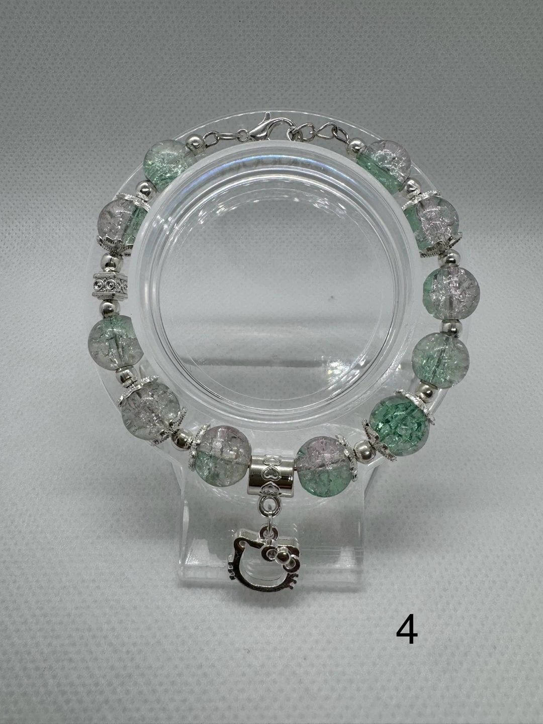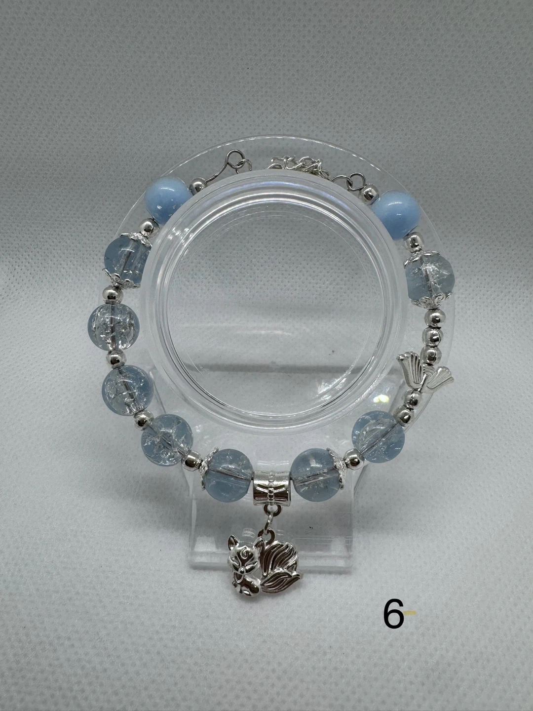 Blue and Yellow Crackle Glass Beaded Bracelet with Cross Charm