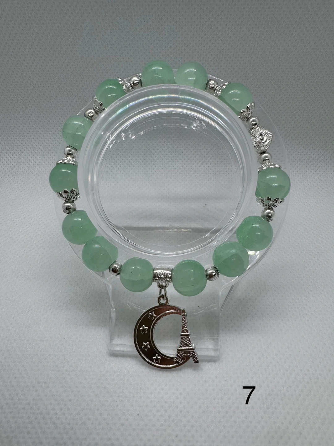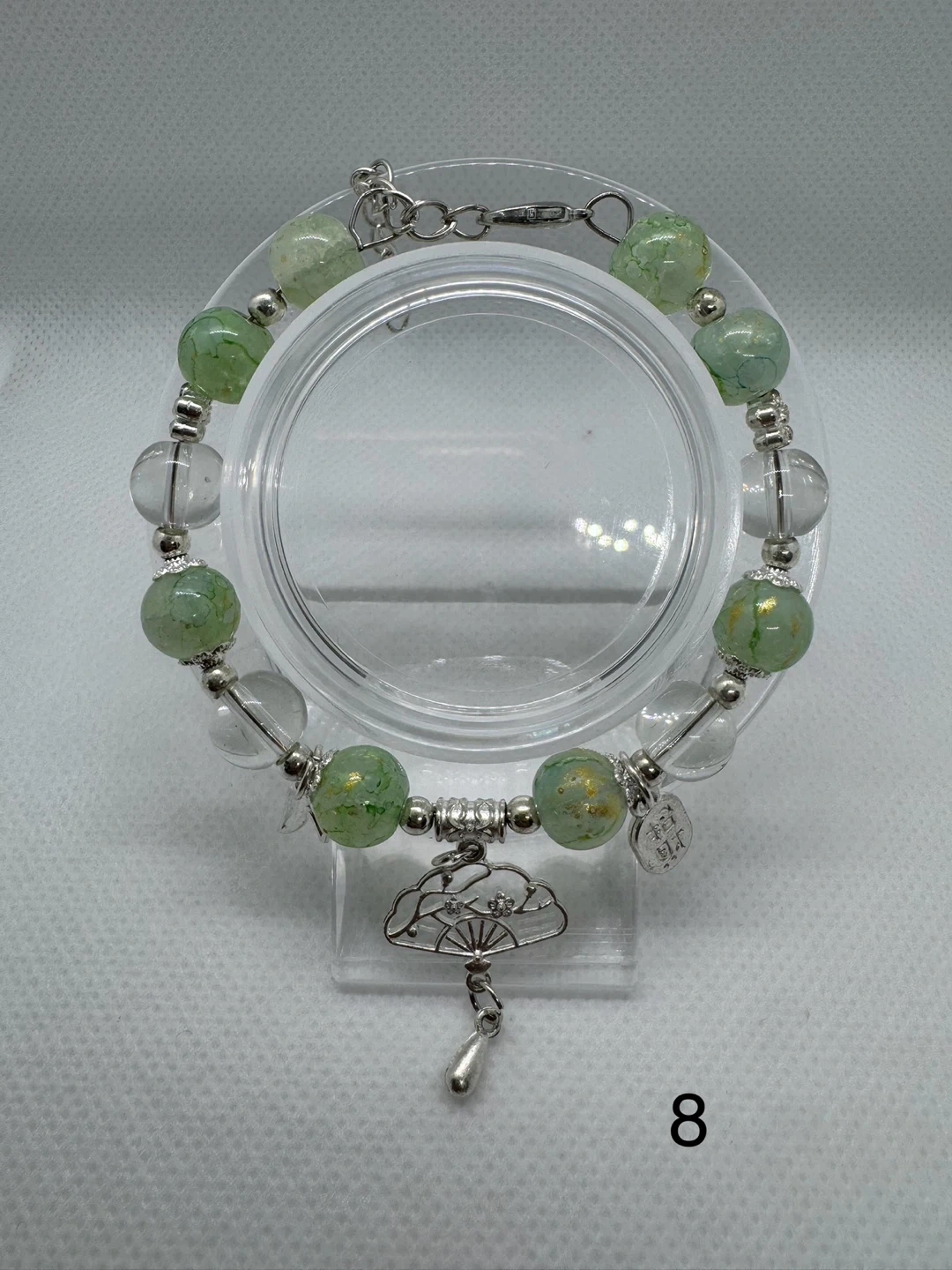 This bracelet features glass beads, accented with silver-toned spacers and a dangling cross charm. It's a lovely accessory. Great for casual wear or as a thoughtful gift!