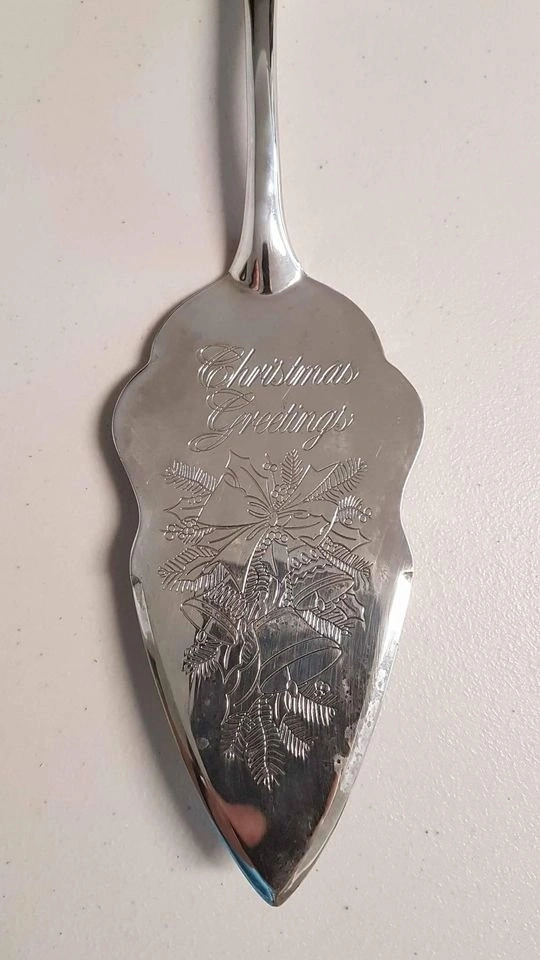 Embossed "Christmas Greetings" Silverplate Dessert Server