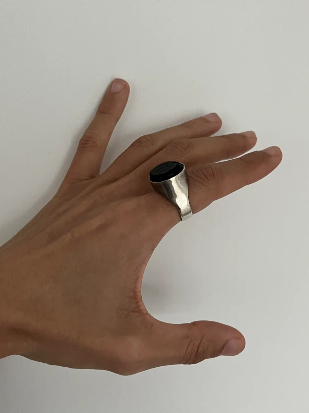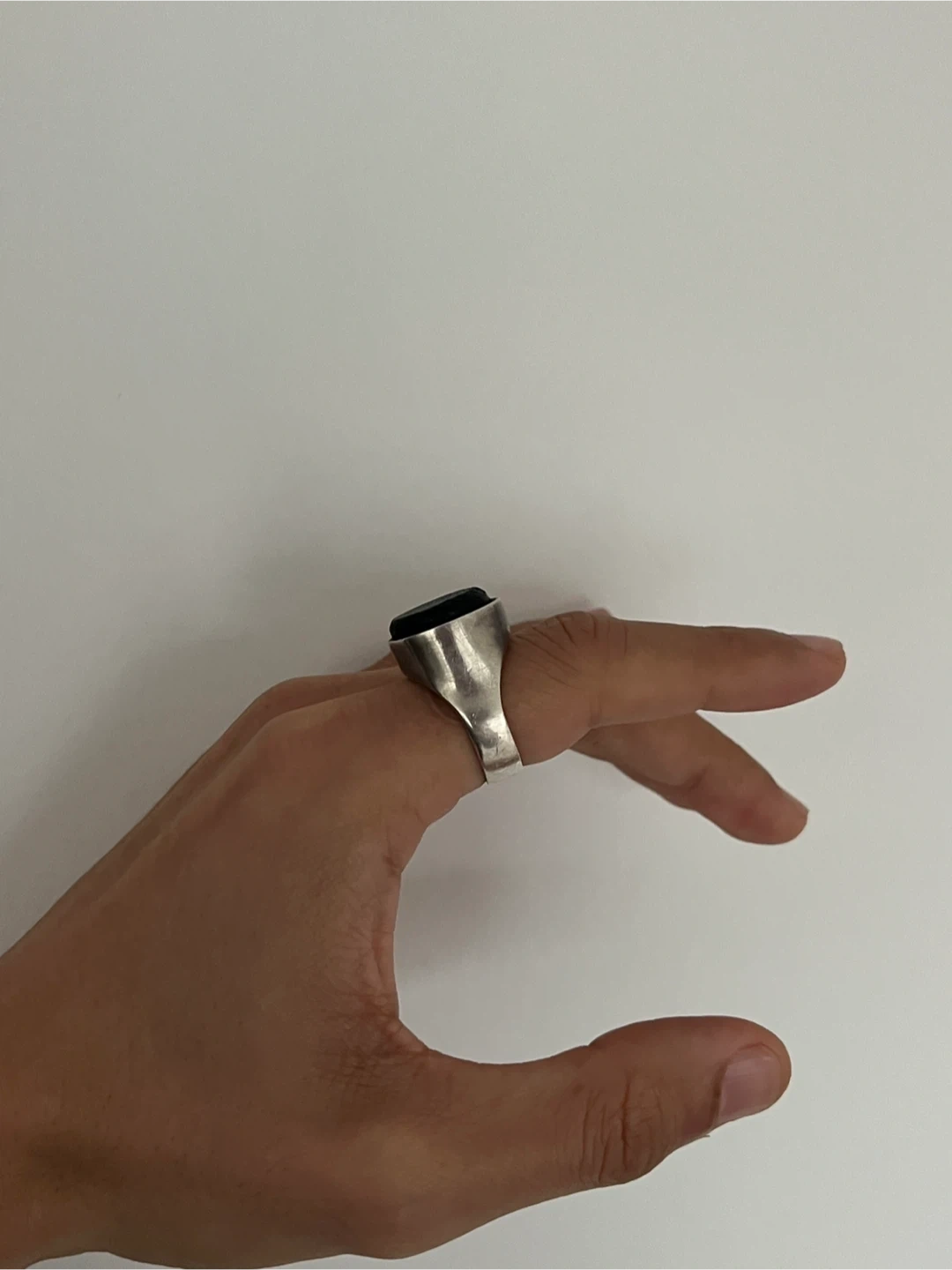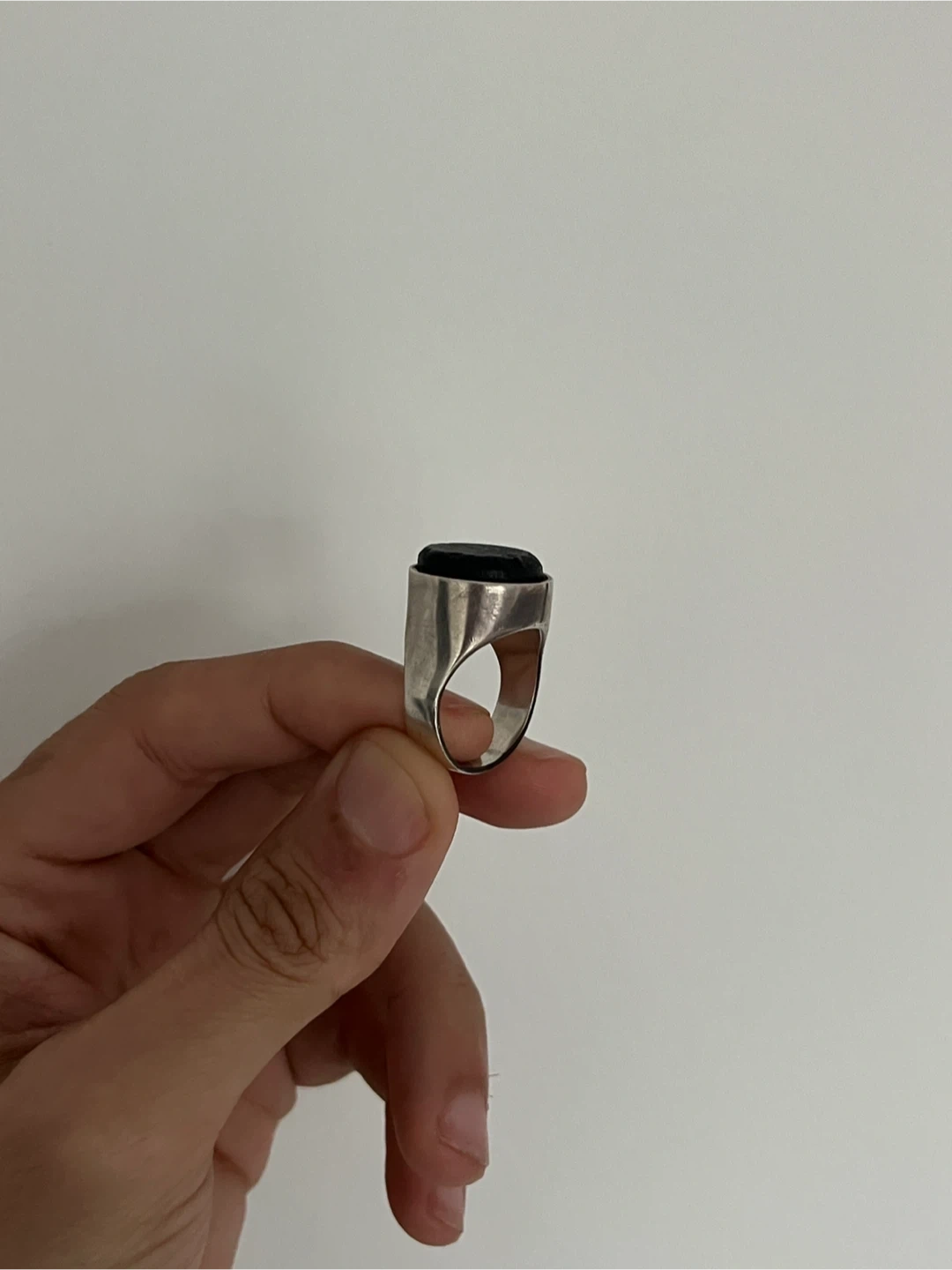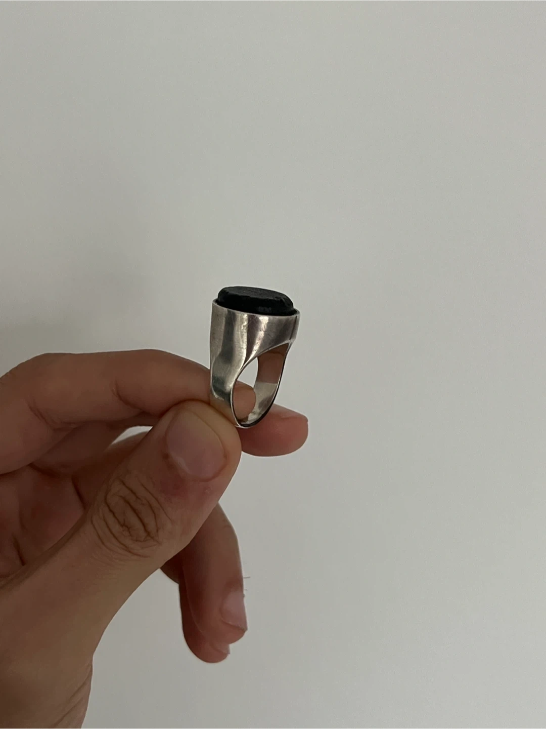 A stunning and chic solid sterling silver ring with a natural, untreated charcoal bulb stone on top. Bought it from Made You Look 2 years ago, I can’t recall the designer. Retails for $300+ I didn’t wear it as much, requires someone who enjoys rings and a subtler bold statement. Ring size is 9 but can also fit 9.5