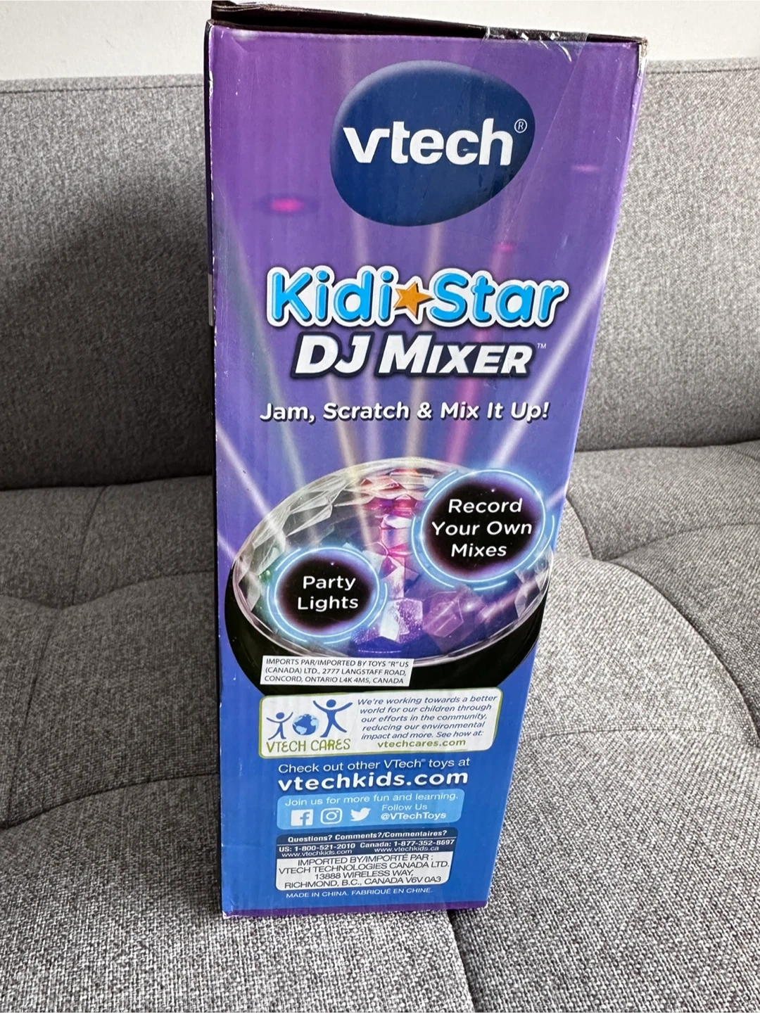 Get ready to jam, scratch, and mix it up with the VTech KidiStar DJ Mixer! This fun toy is brand new in unopened box. Retails over $80 plus tax!