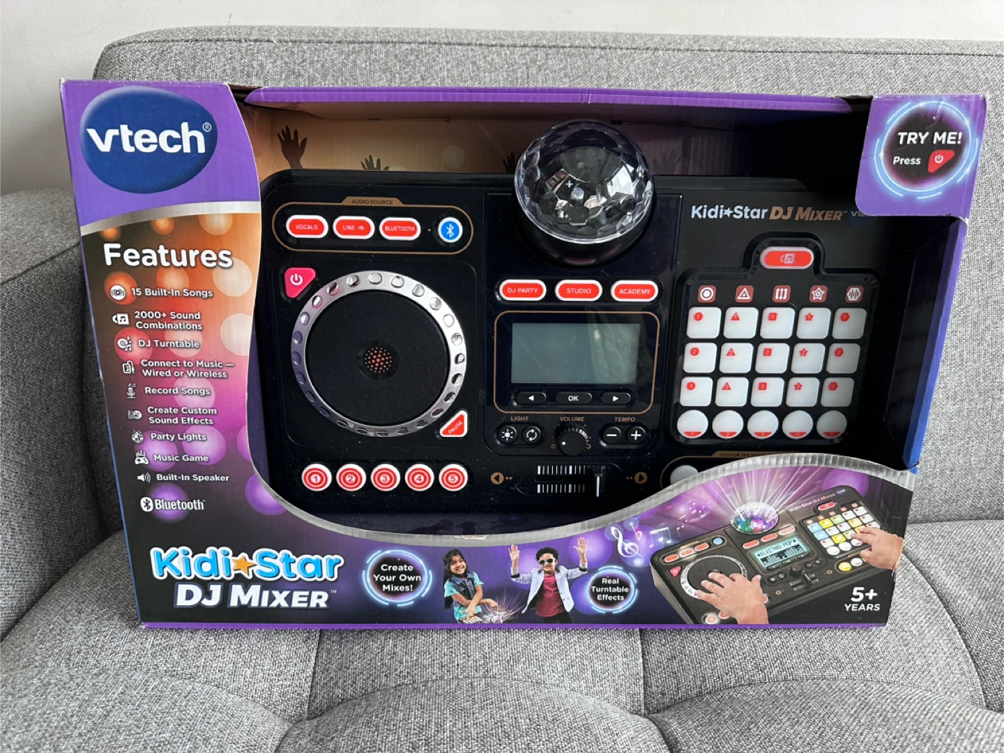 Get ready to jam, scratch, and mix it up with the VTech KidiStar DJ Mixer! This fun toy is brand new in unopened box. Retails over $80 plus tax!