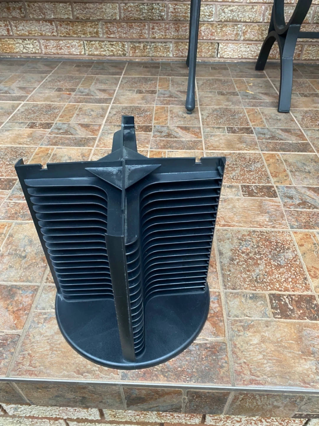 This is a black CD storage rack in good condition. It can hold a number of CDs and is a great way to keep your music organized