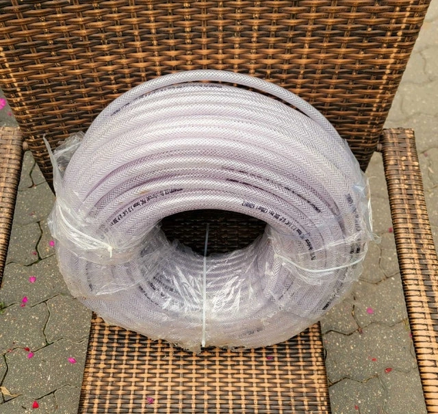 Brand new braided PVC hose roll. Strong, flexible, and perfect for air, water, or shop use. Heavy-duty braided PVC, 300FT roll with 1/4" I.D. Great for tools, air, and water. Perfect condition. Pickup in Downtown Calgary (Bridgeland Area). $140 CAD.