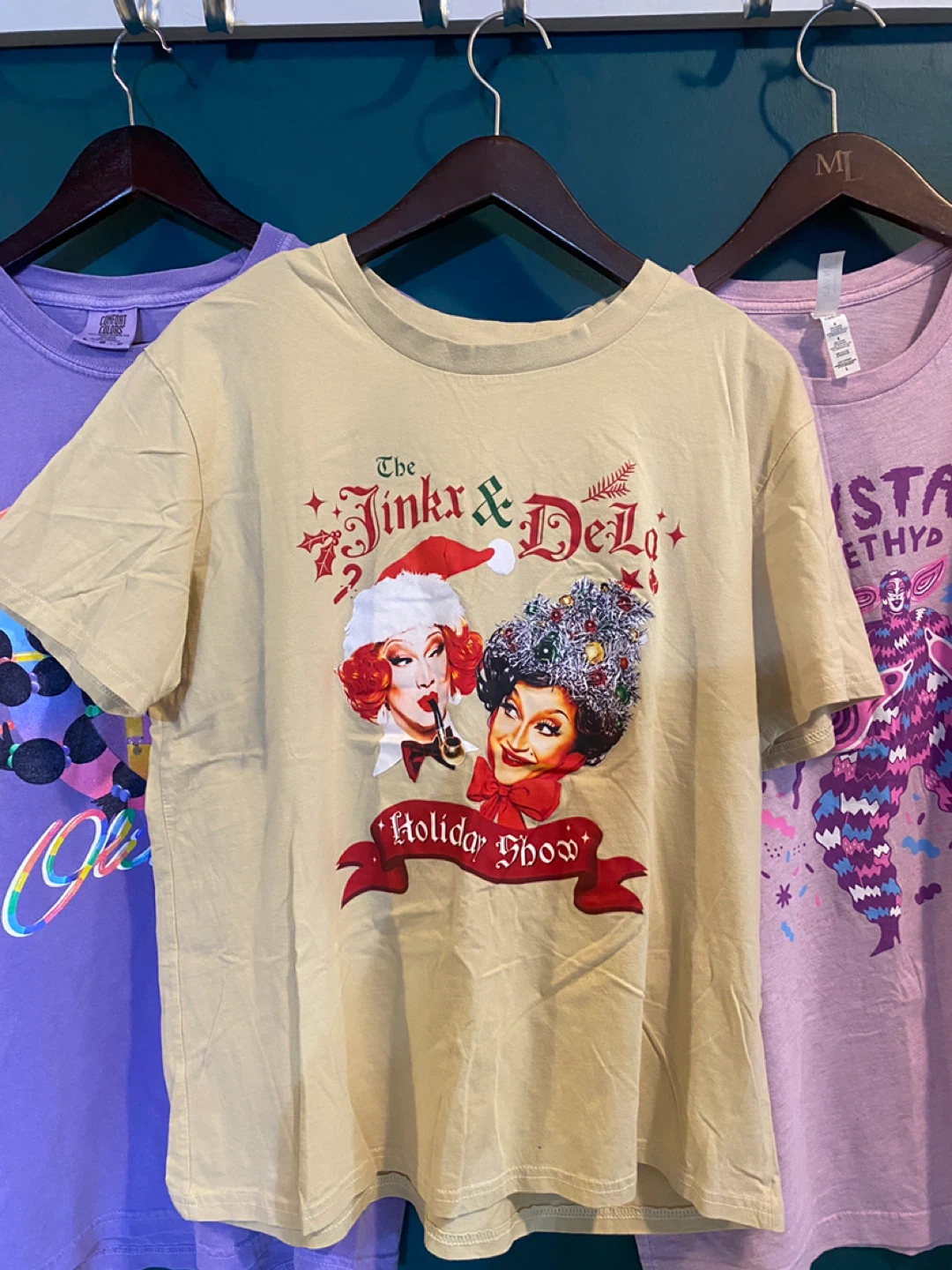 - The Jinkx & DeLa Holiday Show Original tee, Beige Unisex. In good condition.