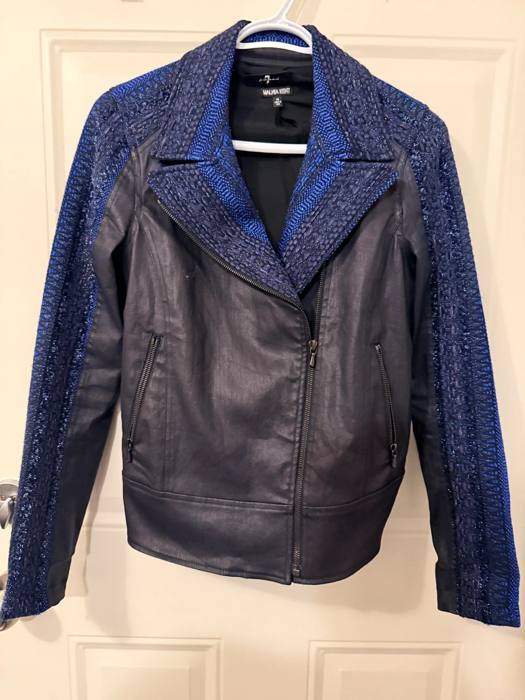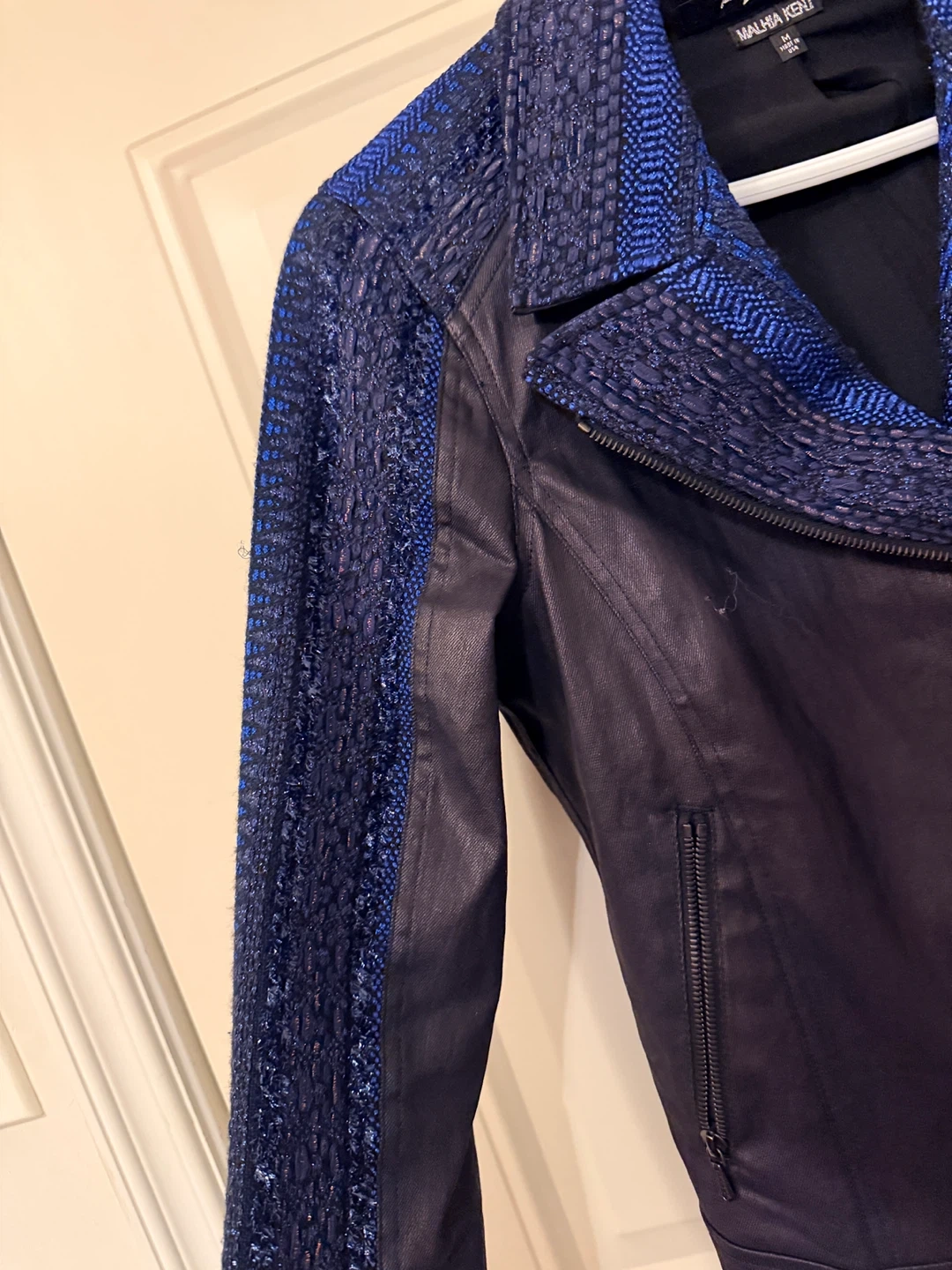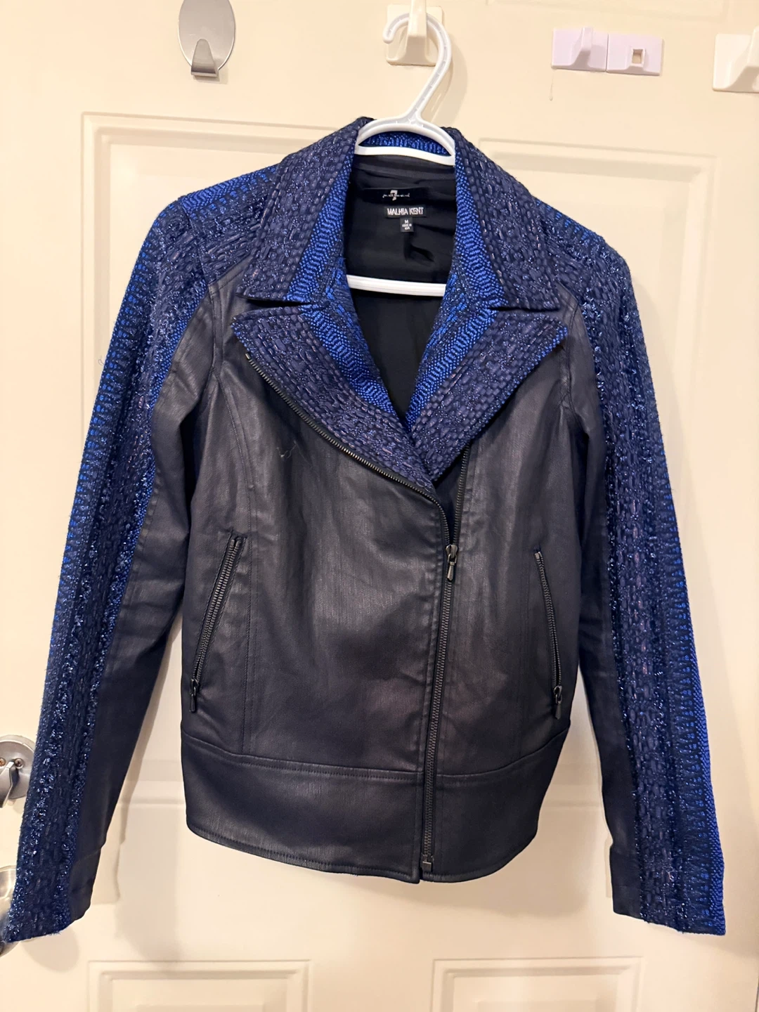 Malhia Kent Women's Blue Textured Moto Jacket Size M π