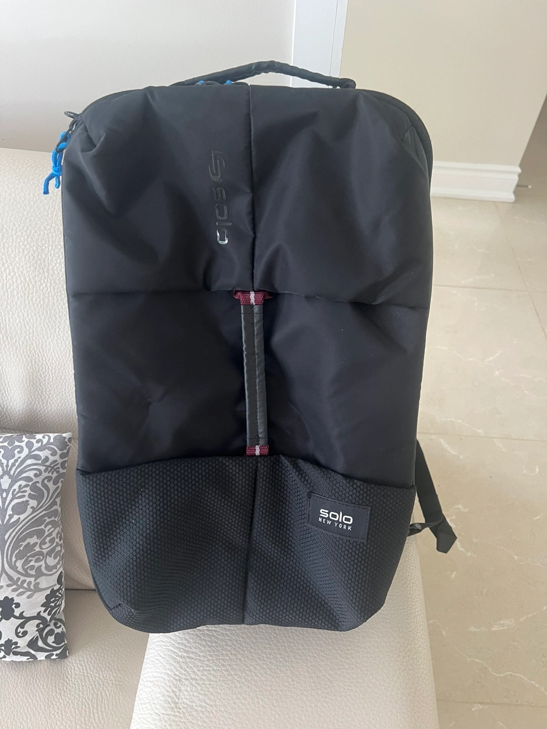 I'm selling a black backpack from Solo New York. It's in great condition and ready for a new home! It's perfect for carrying your essentials around town or for travel. It's lightweight and portable too!