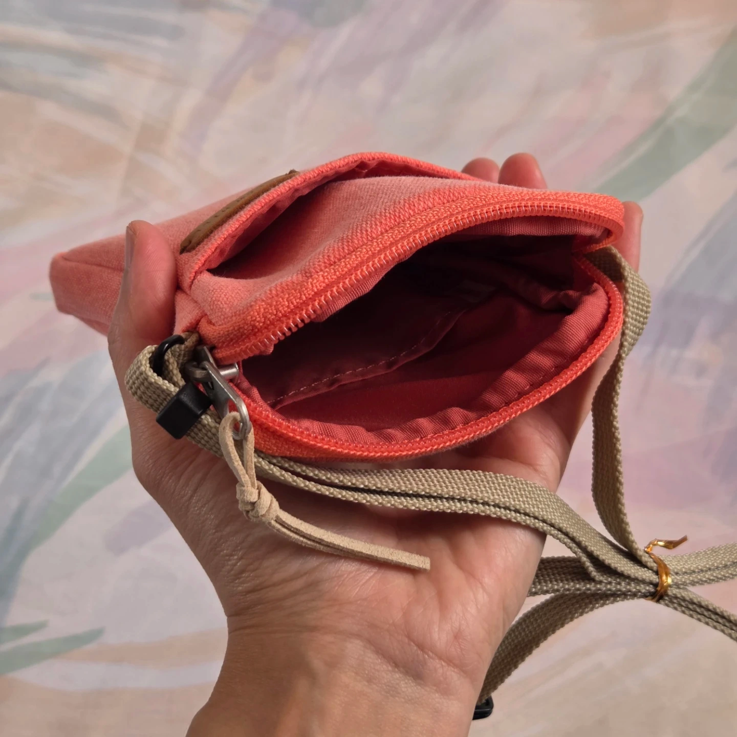 Selling a cute crossbody bag in a coral red colour