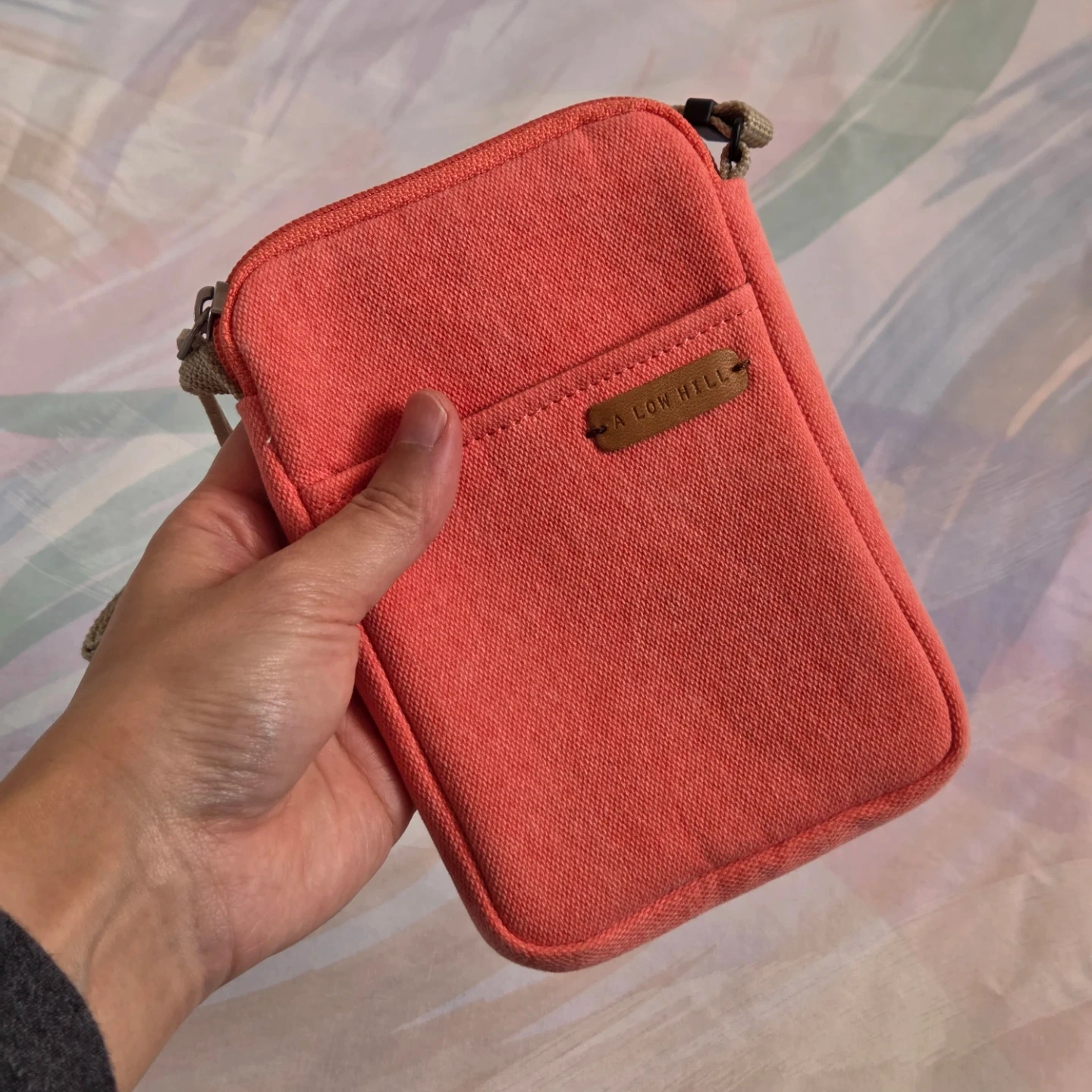 Selling a cute crossbody bag in a coral red colour