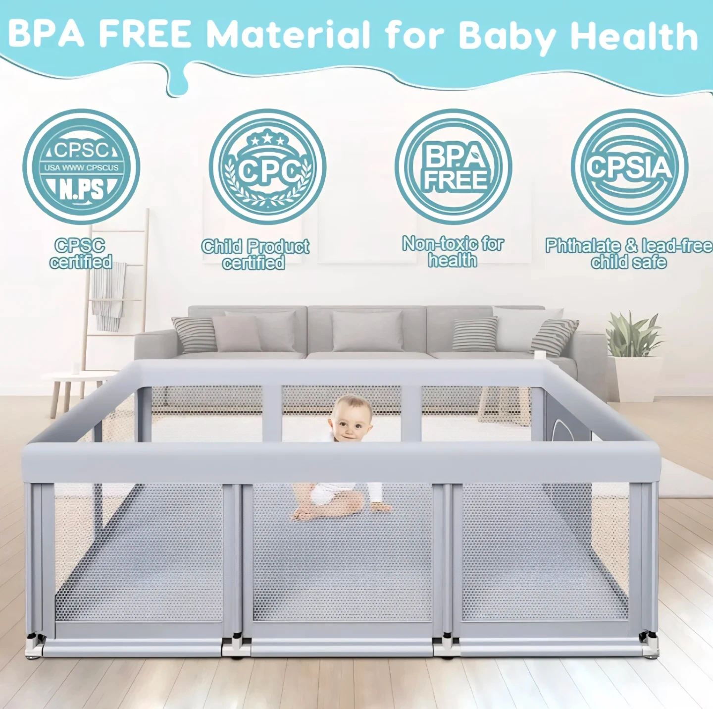 Fshibila 50"×74"x27" Large Baby Playpen, Baby Playard for Babies and Toddlers, Baby Fence Play Pens for Indoor & Outdoor, Sturdy Safety Play Yard with Soft Breathable Mesh, Anti-Fall, Grey