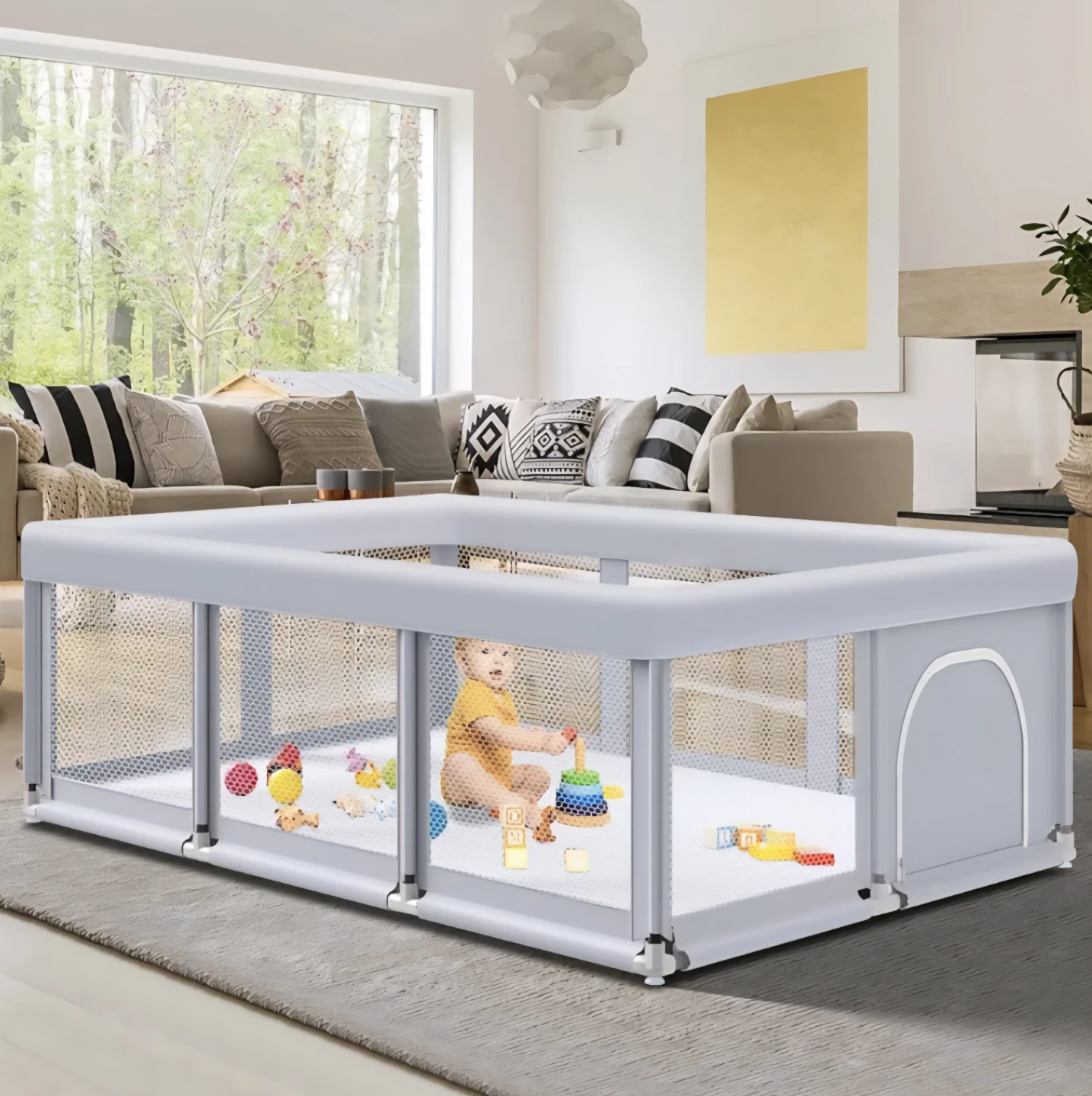 Fshibila 50"×74"x27" Large Baby Playpen, Baby Playard for Babies and Toddlers, Baby Fence Play Pens for Indoor & Outdoor, Sturdy Safety Play Yard with Soft Breathable Mesh, Anti-Fall, Grey