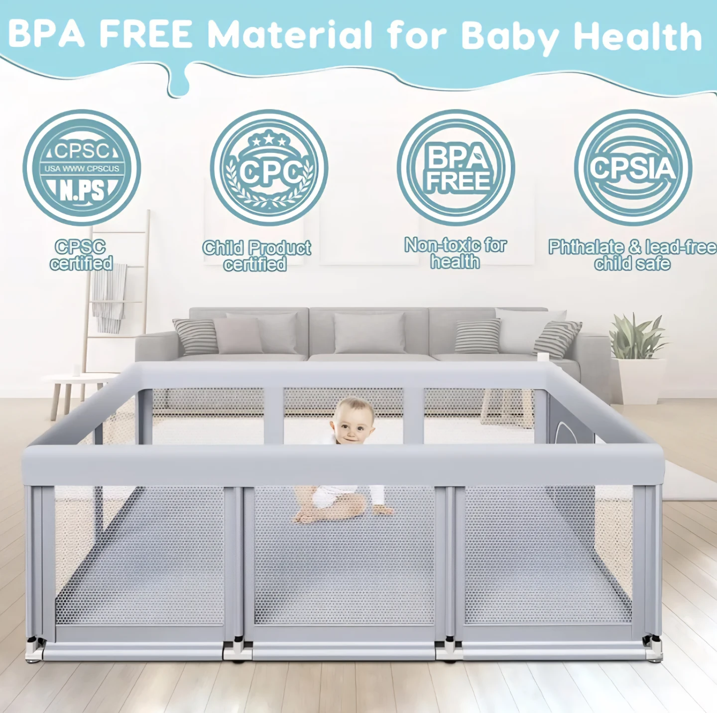 This playpen is BPA free and CPSC certified, ensuring child safety. It's made with durable materials for long-lasting use. The mesh sides allow for easy supervision and ventilation. This is great for keeping babies and toddlers safe while they play!