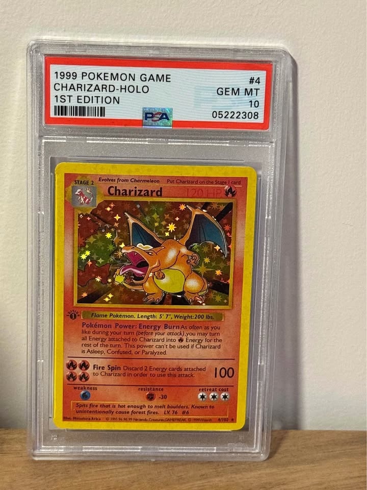 Decorative replica display piece featuring artwork inspired by the classic Pokémon Charizard design. This is a novelty display replica only and is not an authentic graded card. It is intended strictly for decorative purposes. The card is sealed in a protective hard plastic display case, making it perfect for: Game room decor, Office shelves, Pokémon-themed setups, Gifts for fans, Nostalgic display pieces. Classic Charizard Base Set style artwork, Decorative replica version, Non-playable / no collector resale value, Clean condition and ready to display. Great way to showcase the iconic Charizard look without the high collector price. Pickup in Seton.