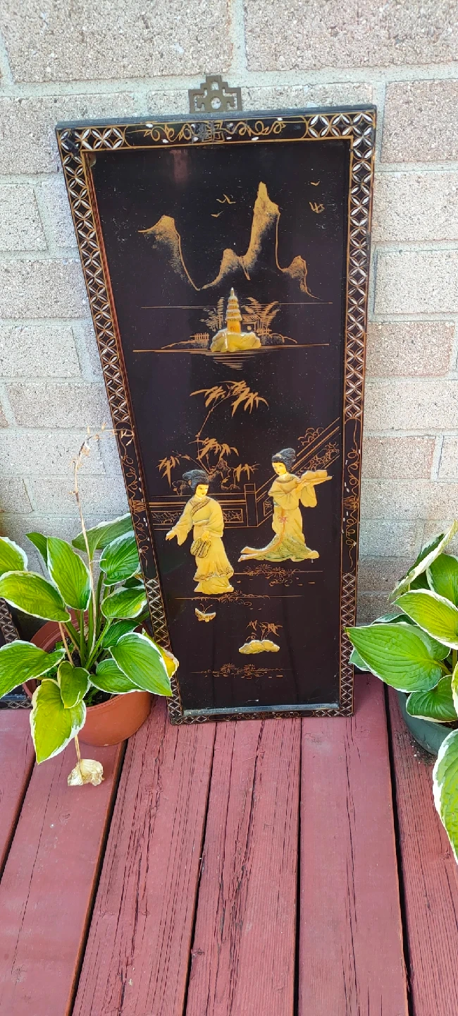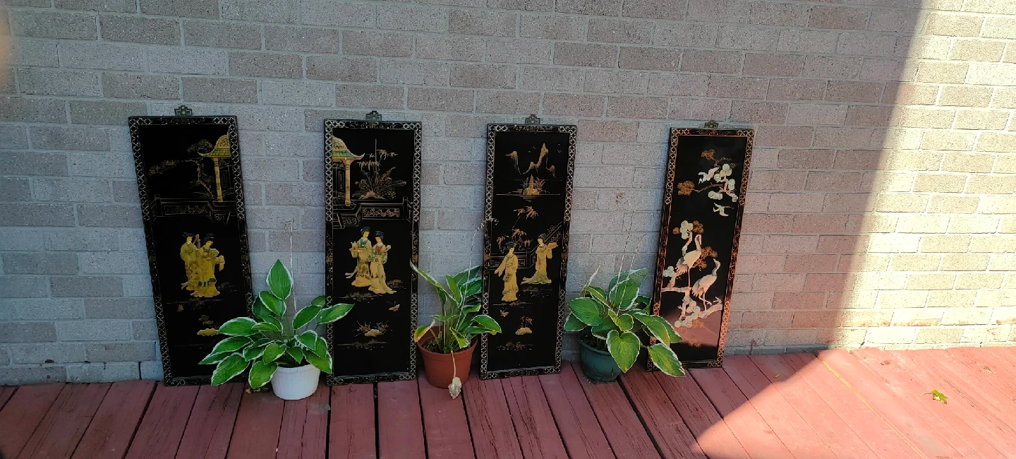 Selling a set of five vintage Asian lacquer wall panels! size: 1ft w x 3ft h . These panels feature beautiful inlaid designs and would make a stunning addition to any room. They're in great condition and ready to be hung. Pick up near Malvern town center Scarborough
