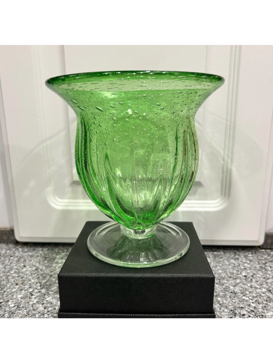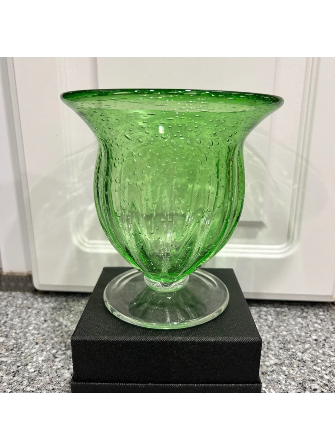 Selling a beautiful green bubble glass vase. It's in great condition and would look lovely in any home. The diameter is approximately 6 inches