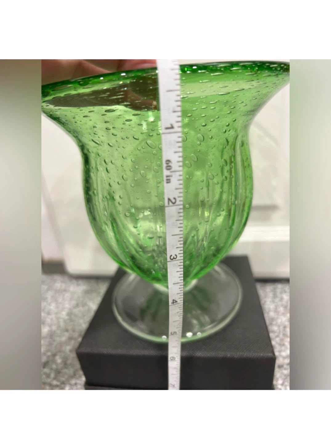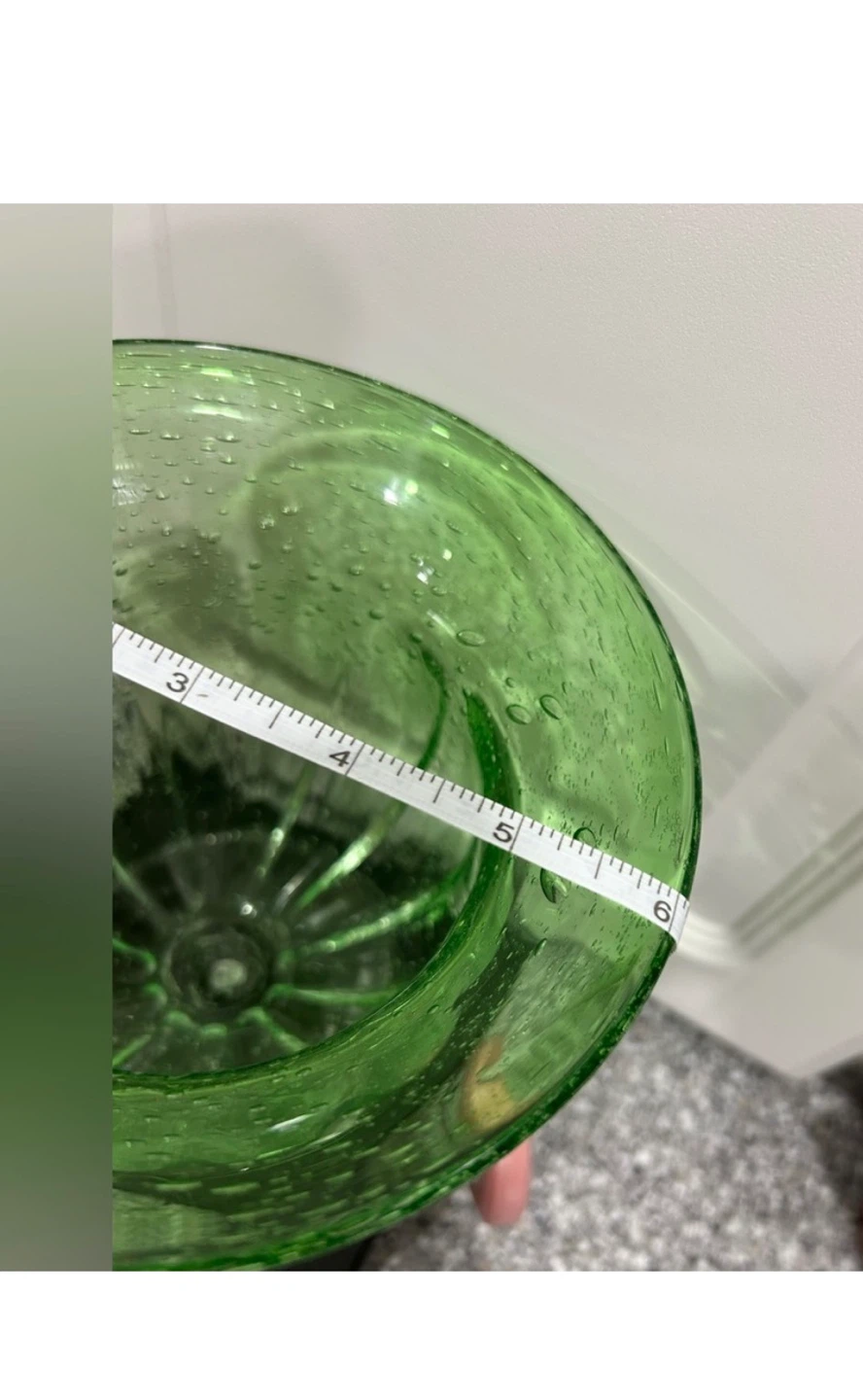 Selling a beautiful green bubble glass vase. It's in great condition and would look lovely in any home. The diameter is approximately 6 inches