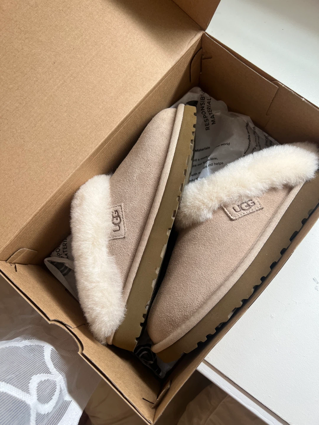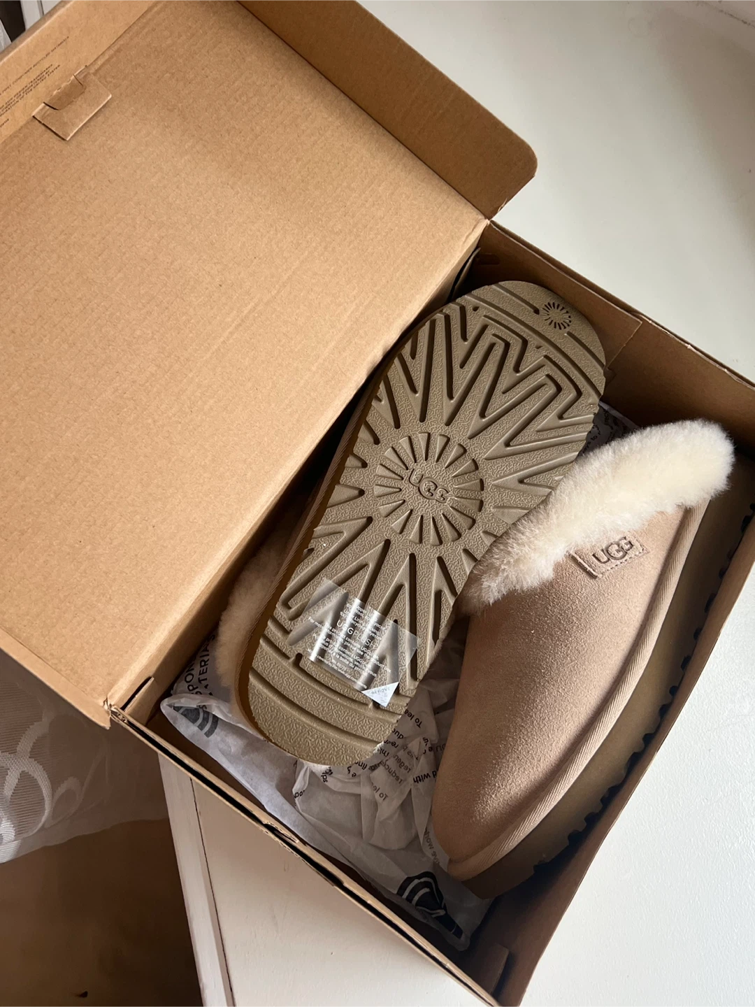 Brand new UGG W Cluggette slippers in beige. Women's size 8 (EU 39, JP 25). Includes original box.
