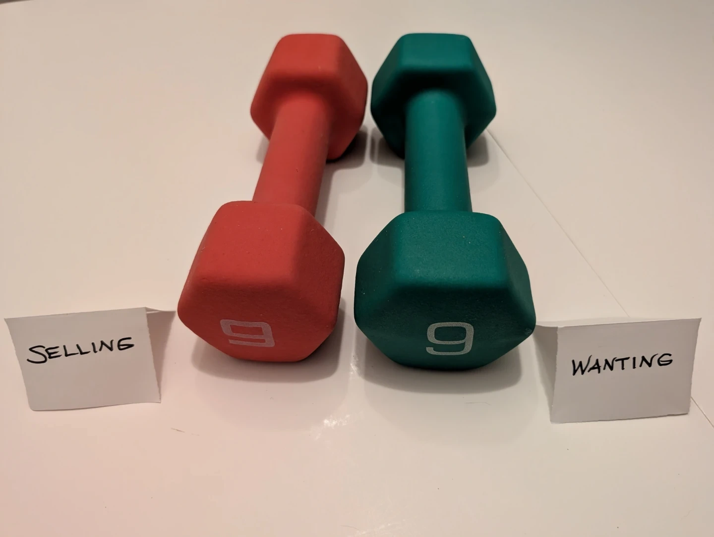 So if anyone out there also has a mismatched set of red and green 9 lb dumbbells from when they went on clearance at Canadian Tire a year or so ago, and you want a matched set, I'm happy to trade whichever one!