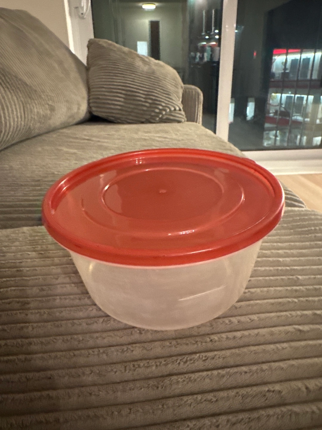 Giving away this medium-sized food storage container with lid. Still in good condition and works perfectly for storing leftovers, meal prep, or snacks.