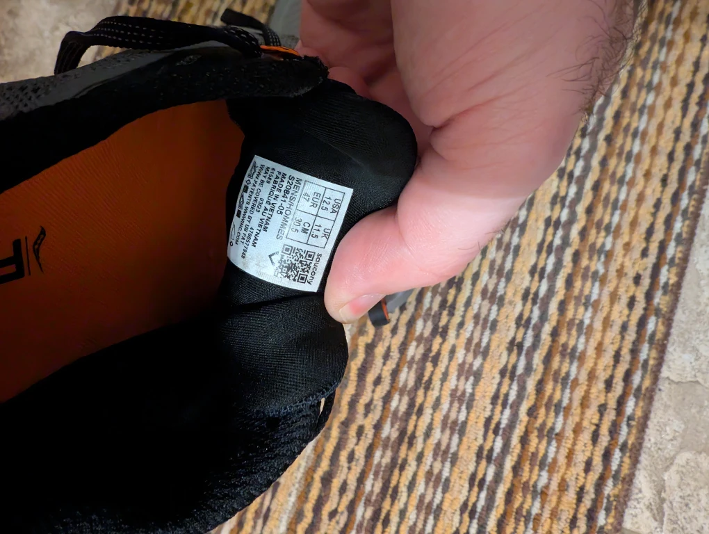 Selling a pair of Saucony Peregrine 12 ST trail running shoes in grey and orange. They're a men's US size 11.5, EUR 45. The shoes feature FORMFIT technology for a comfortable fit, and GORE-TEX for water resistance. Great for hitting the trails!