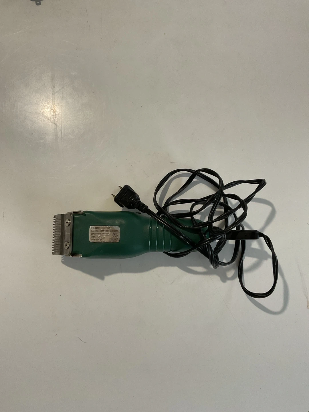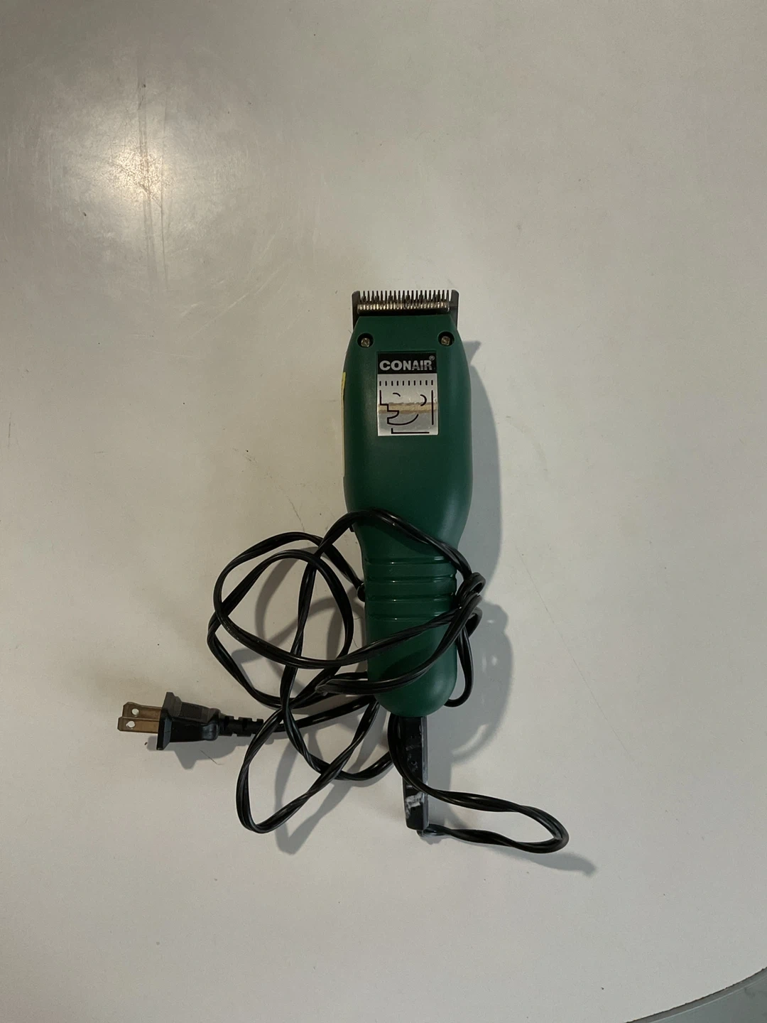 Conair green corded hair clippers for grooming. This unit comes with a power cord and is ready for use. It's designed for efficient hair trimming.