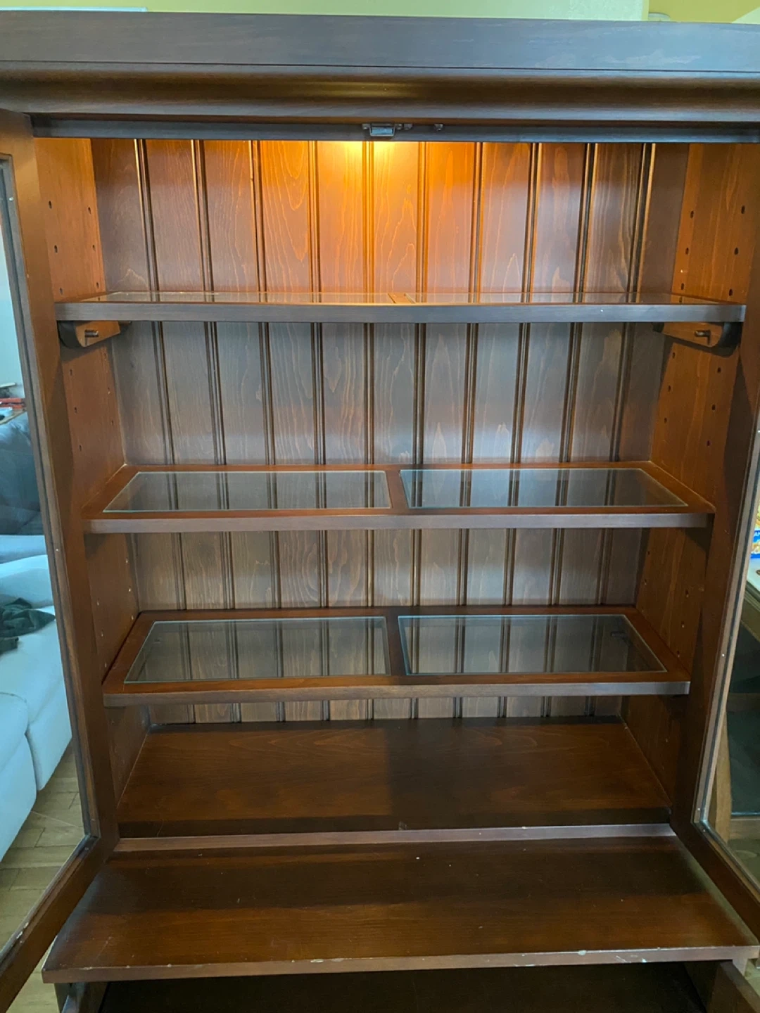 • Multiple shelves (includes glass inserts for display)