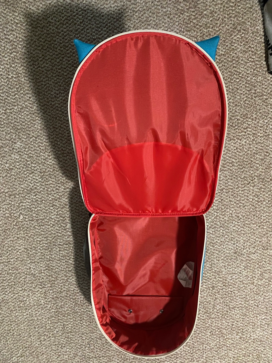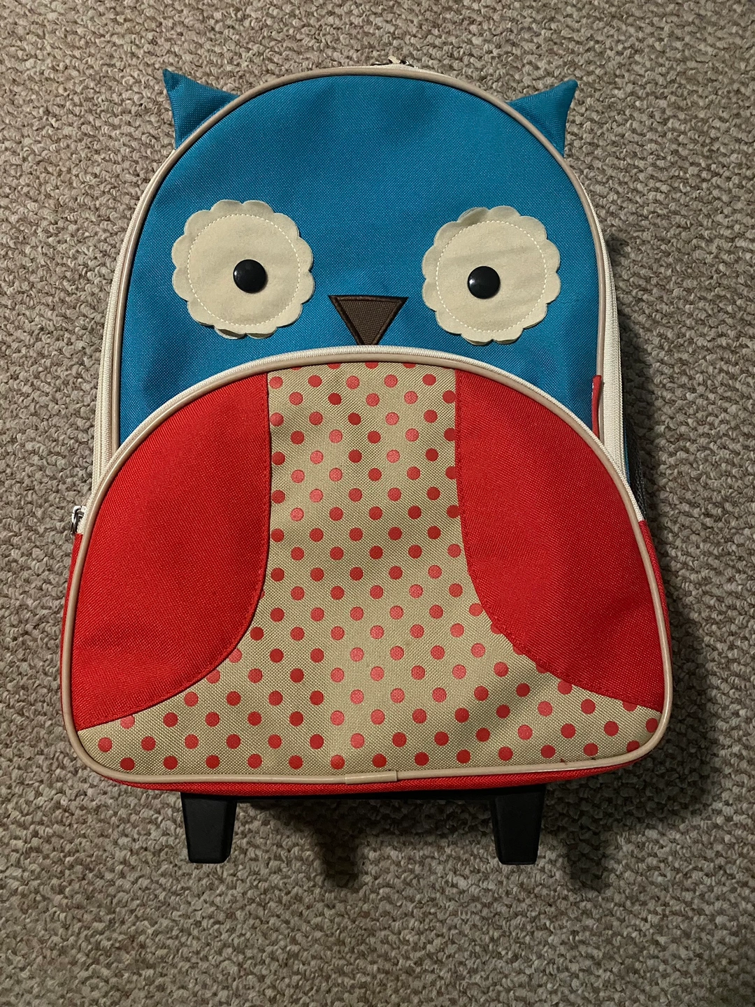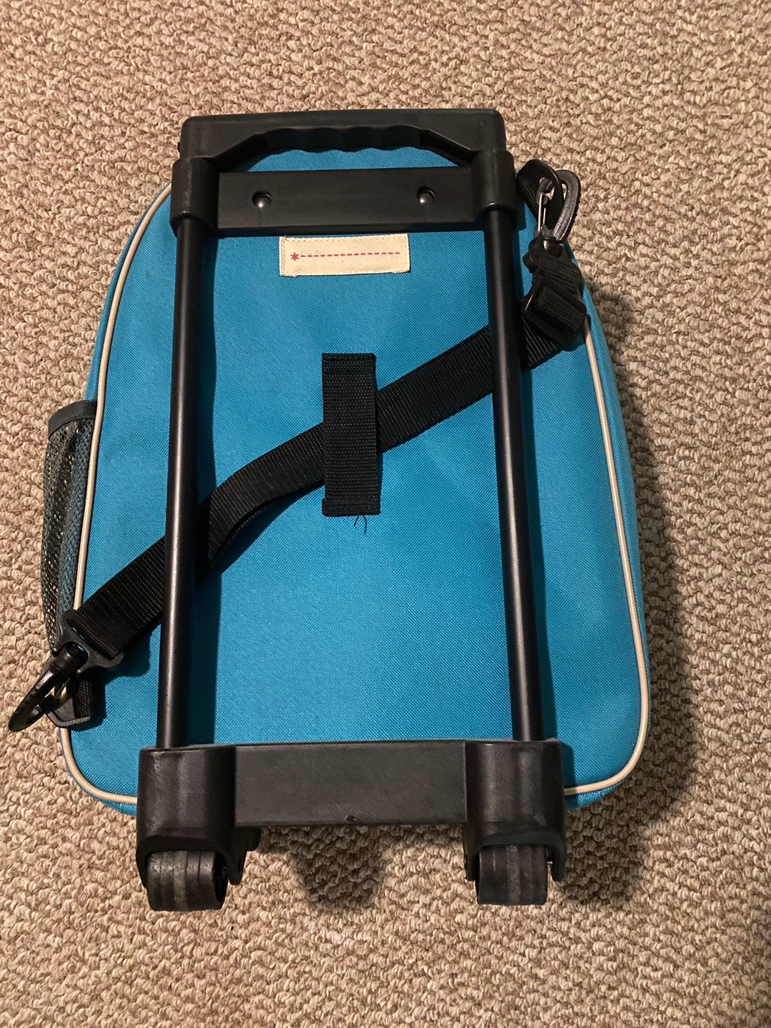 These are discontinued and the BEST suitcase for travelling with small ones! Drink holder on the side, lots of room for their things, back strap in case the parent needs to take over…double zipper on the main compartment so you are never search for how to open…