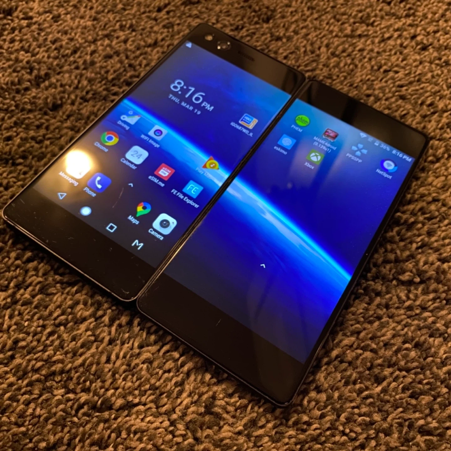 Here's my pretty rare ZTE Axon M Z999 64GB Carbon Black 64GB (2017) android in overall good cosmetic condition, with microscratches on the display, slight dents on the right aluminum side, though no other damage.