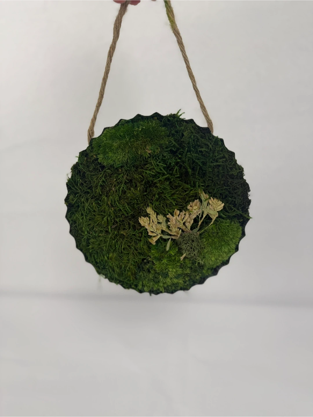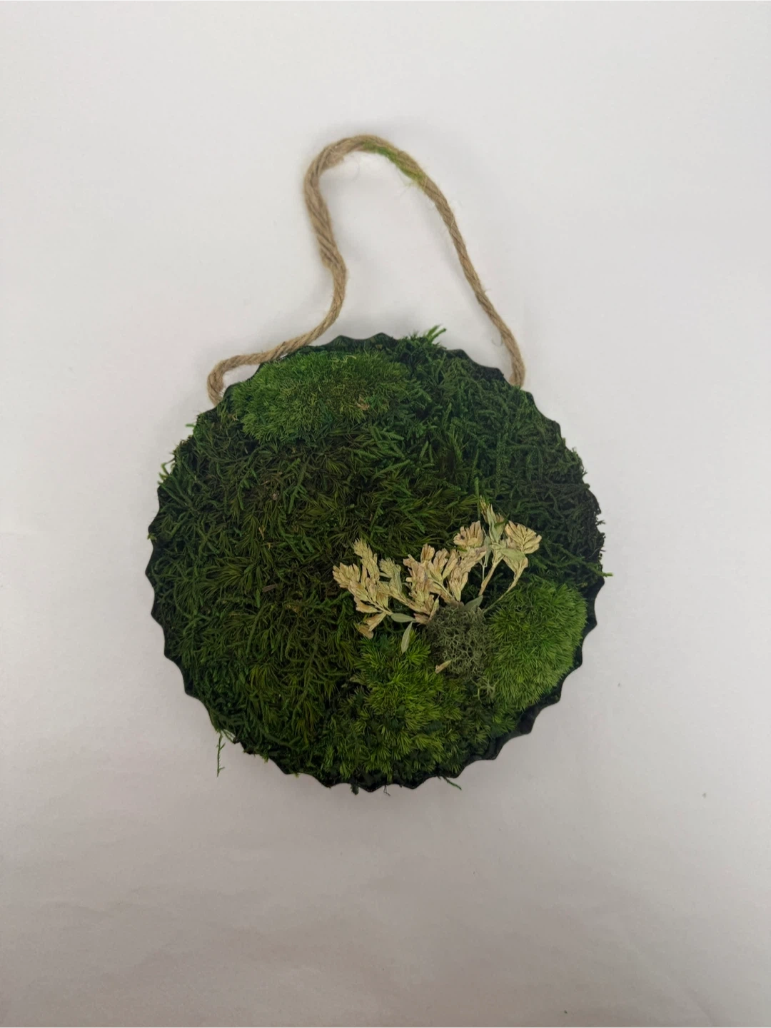 This is a cute moss ball wall hanging, perfect for adding a touch of nature to your home decor! It's in great condition and ready to brighten up any space 6”