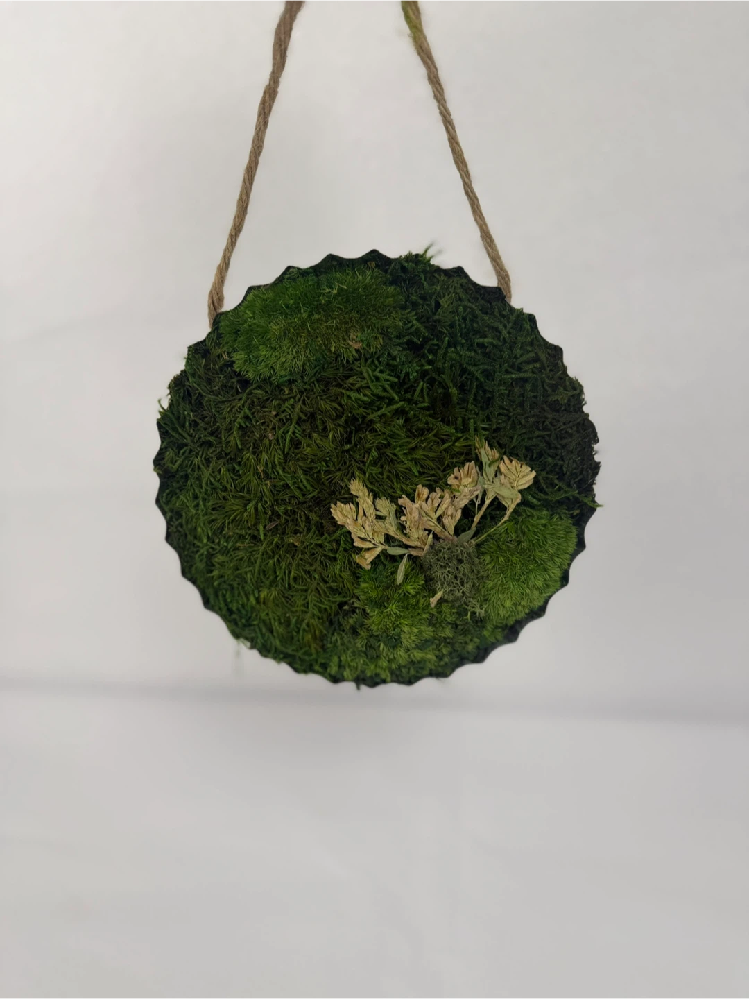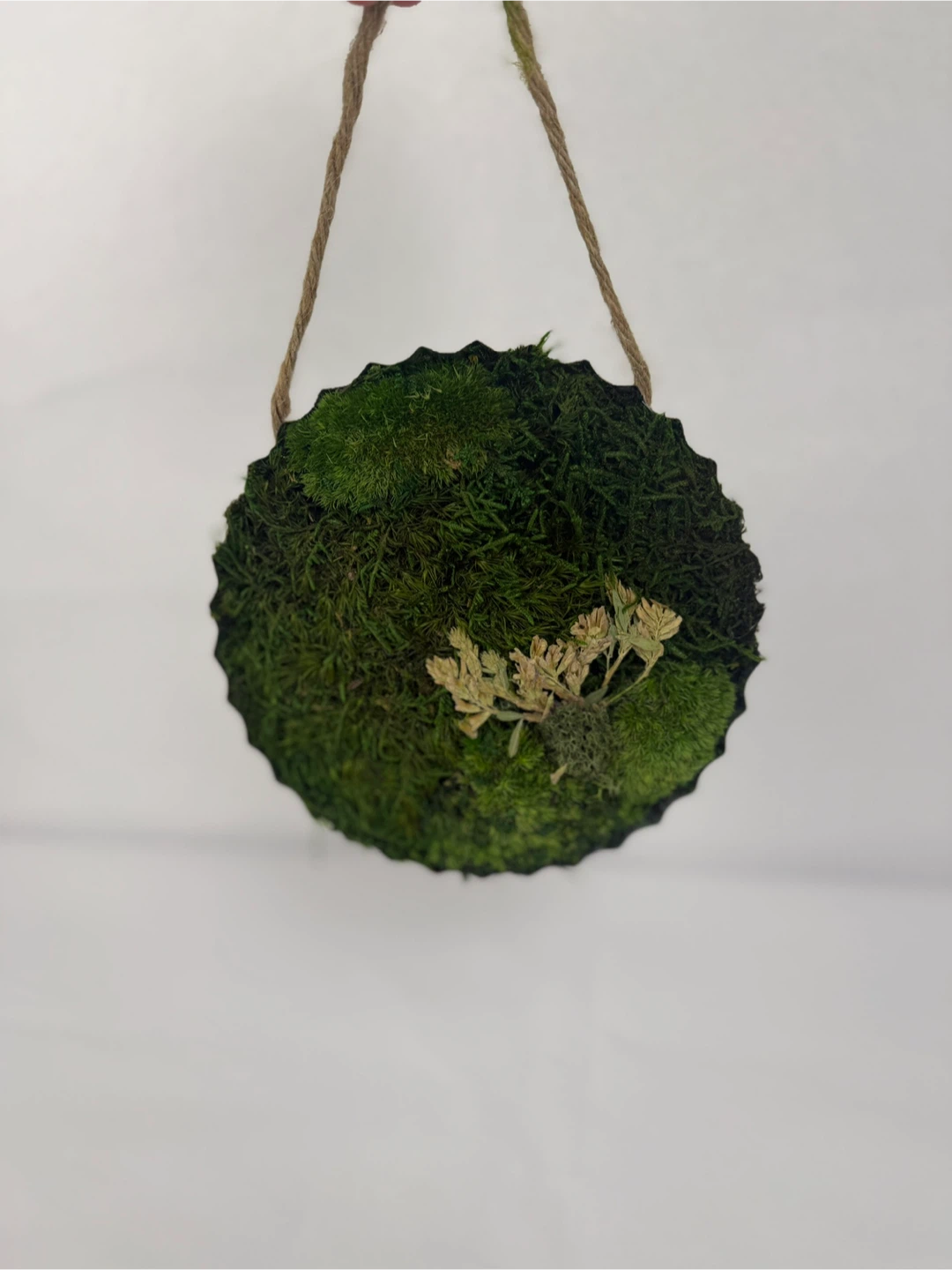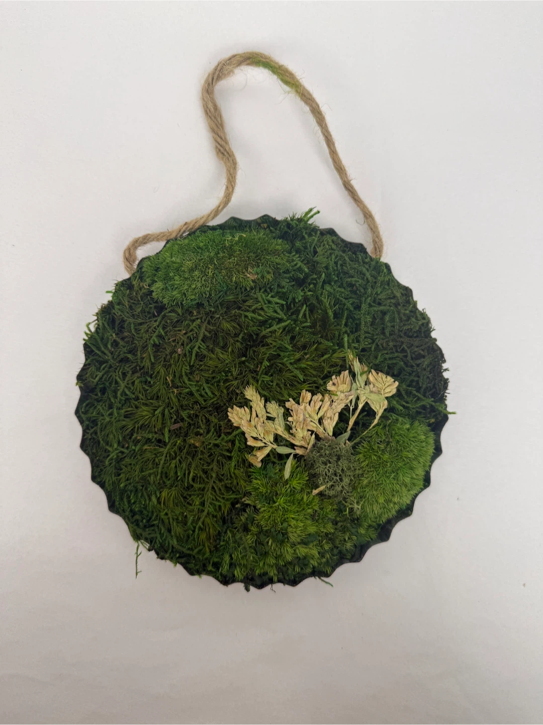 This is a cute moss ball wall hanging, perfect for adding a touch of nature to your home decor! It's in great condition and ready to brighten up any space 6”
