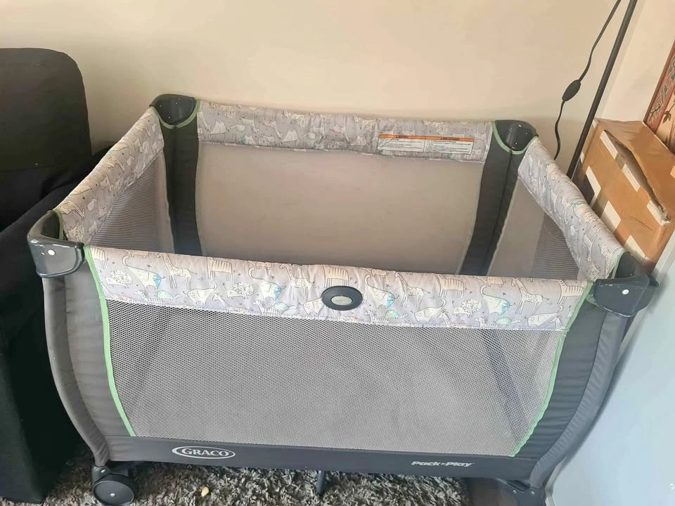 Gently used Graco portable baby playpen. It is very lightweight, travel-friendly, and easy to fold. Selling because I no longer have the carry cot. Pet and smoke-free home. Can be purchased with the bassinet from my other ad for $100 total.