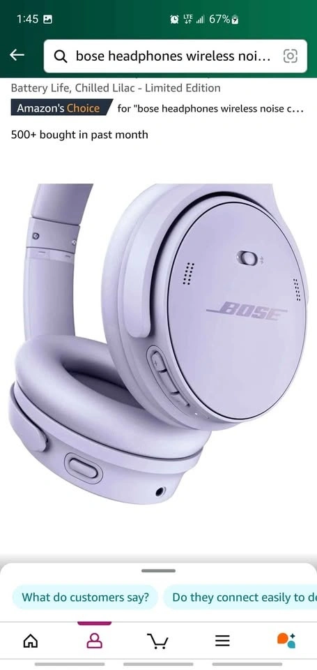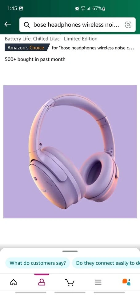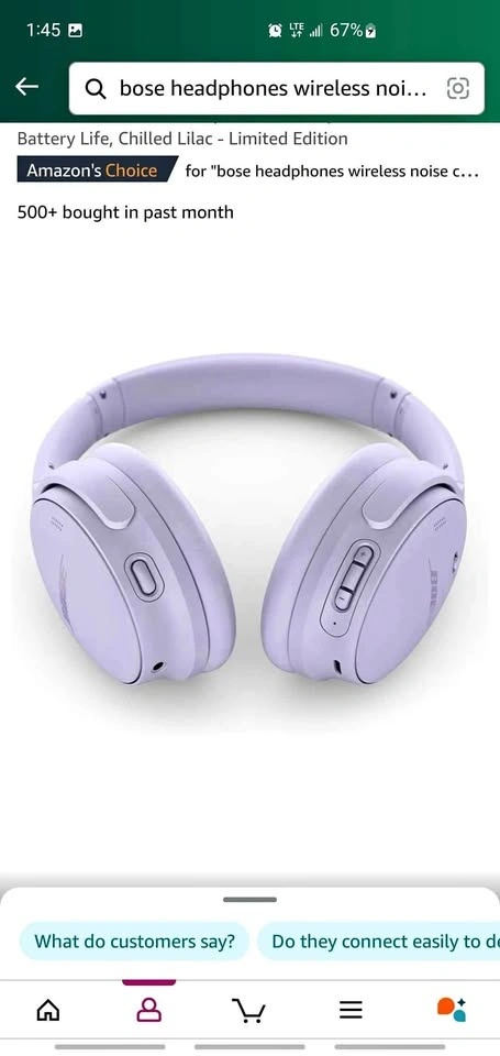 Bose QuietComfort Wireless Noise Cancelling Headphones, Bluetooth Over Ear Headphones with Up to 24 Hours of Battery Life, Chilled Lilac - Limited Edition *Price Firm*