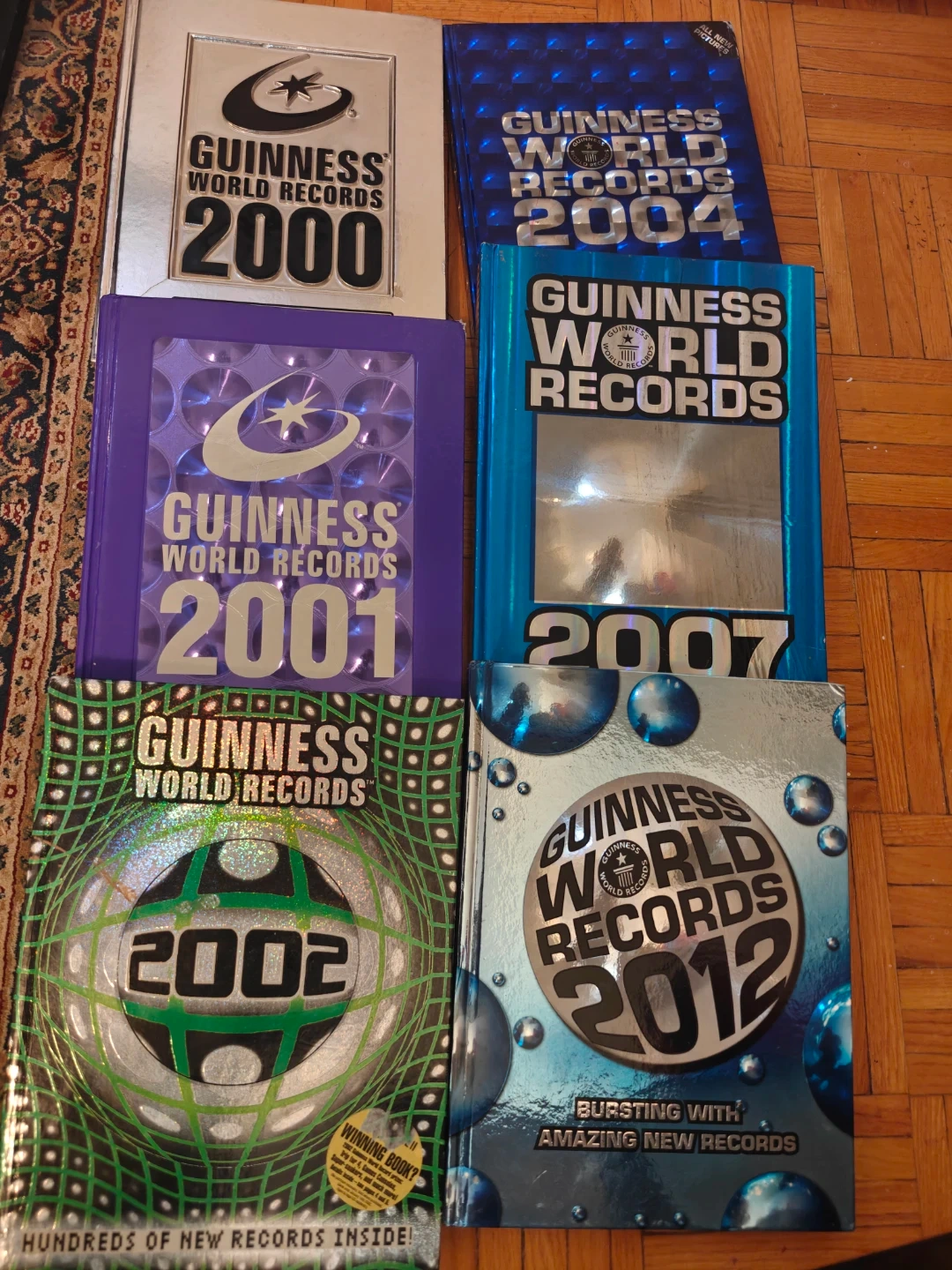 This is a collection of Guinness World Records books spanning several years. It includes the 2000, 2001, 2002, 2004, 2007, and 2012 editions. These books are filled with fascinating new records and trivia. They're a great source of incredible facts and achievements! + Free cooking book.Take al 7 books l for $10