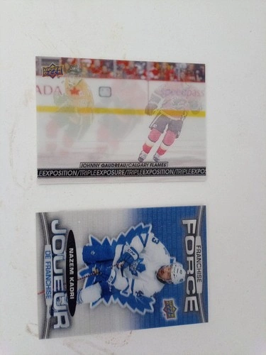 Explore the world of hockey memorabilia with this lot of 2 from the 2016-17 Upper Deck Tim Hortons Franchise Force series. Featuring the talents of Nazem Kadri, this set includes cards that celebrate the player's impact with the Calgary Flames and the Toronto Maple Leafs. A must-have for fans and collectors alike, each card is a testament to Kadri's prowess on the ice during the 2016-17 NHL season. Crafted by the renowned Upper Deck manufacturer and originating from Canada, these sports trading cards are a part of a collection that's respected worldwide. The lot includes sought-after insert and short print cards, making it an exceptional find for those who value the history and legacy of ice hockey. Enhance your collection with these treasures from the National Hockey League's memorable season.