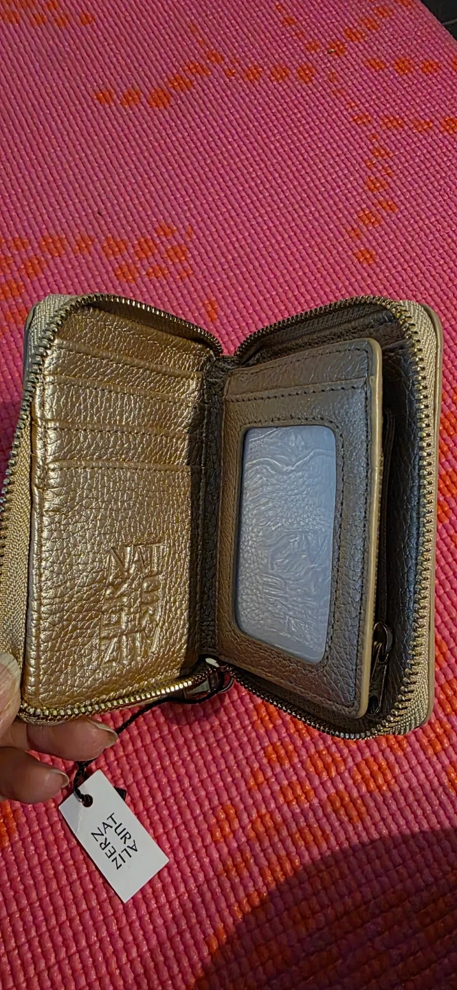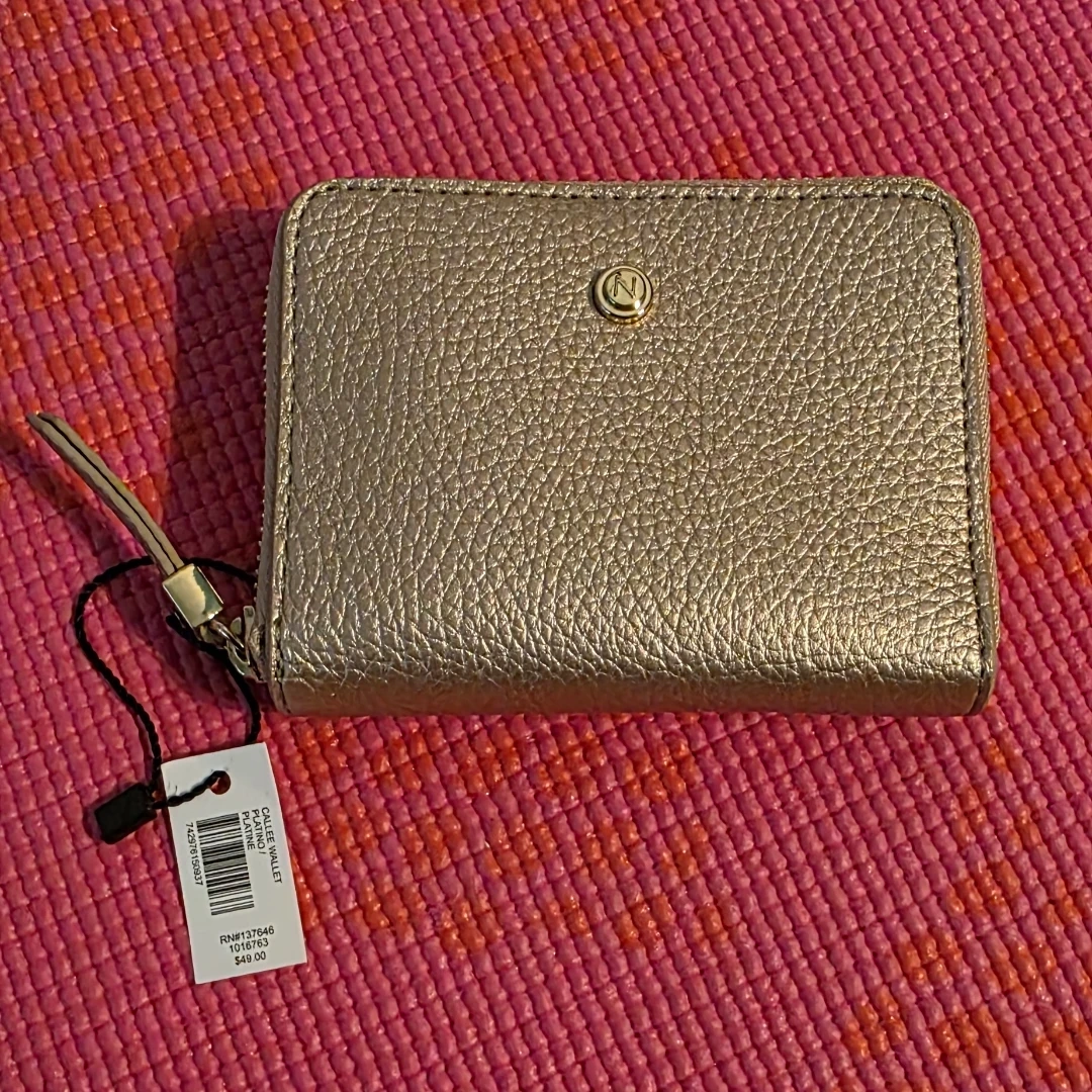 Brand new, with tag, leather zip-around wallet with multiple card slots and an ID window, from Naturalizer. Measurements are in pictures. A great wallet to keep your essentials organized!